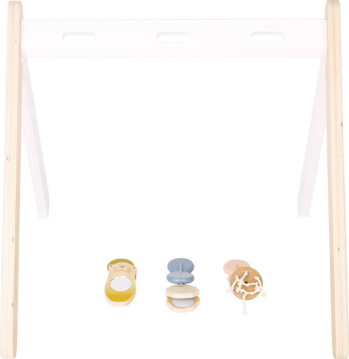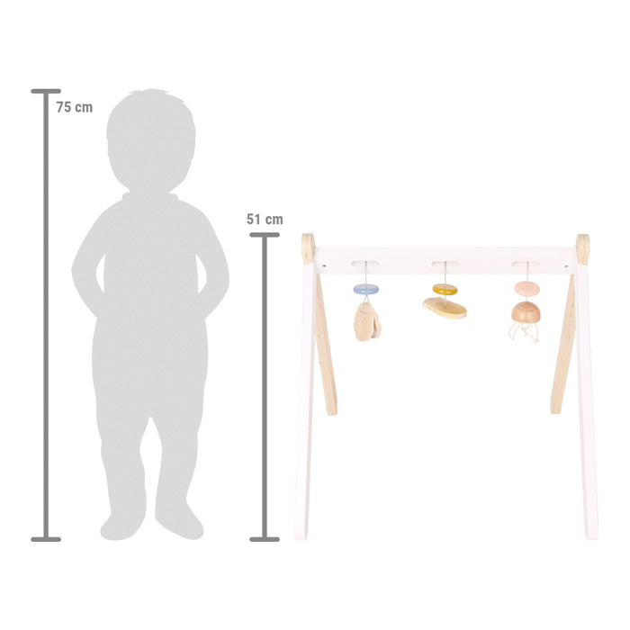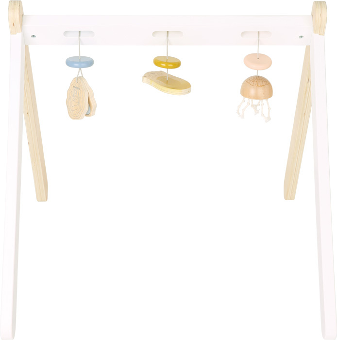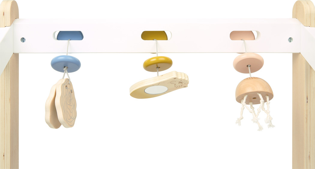 Mořskou vydry, ústřici a medúzu lze připevnit do tří prohlubní bez nářadí tím, že je „protlačíme“ připravenými otvory. Trojrozměrné herní prvky jsou zvláště dobře viditelné pro ležící miminka. Hrazdičku lze rychle a snadno sestavit pomocí dvou šroubů.