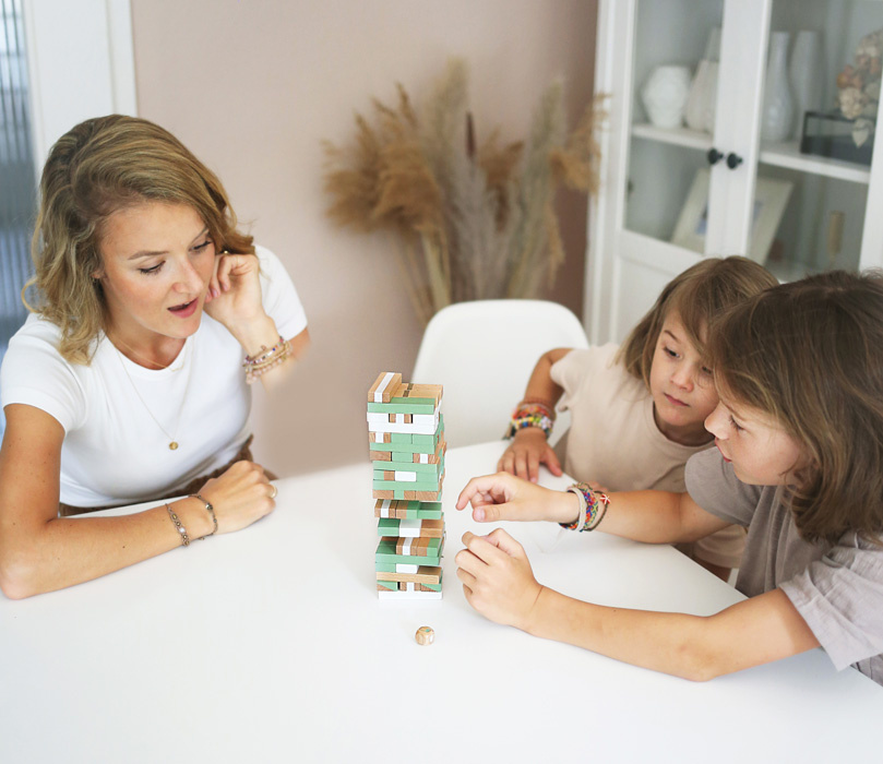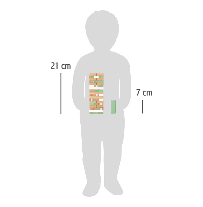 Klasická hra v moderním a elegantním vzhledu s krásnými zlatými detaily, trendy pastelovými barvami v kombinaci s bílou barvou a jasně viditelným dřevem. Hra se skládá z 54 vysoce kvalitních a pevných dřevěných dílků s různými designy. Různé úrovně obtížnosti a konstrukce věže, můžete hrát s kostkou i bez ní. Vysoce kvalitní hračka, která je pěkná na pohled. Balení 2v1, krabice neslouží jen jako úložiště, pomůže vám také se stavbou věže. Pomáhá s rozvojem jemné motoriky a soustředěnosti dětí. Skvěle se hodí k ostatním klasickým hrám z kolekce Gold Edition. Hře lze jednoduše porozumět, je zábavná a nadchne lidi všeho věku.