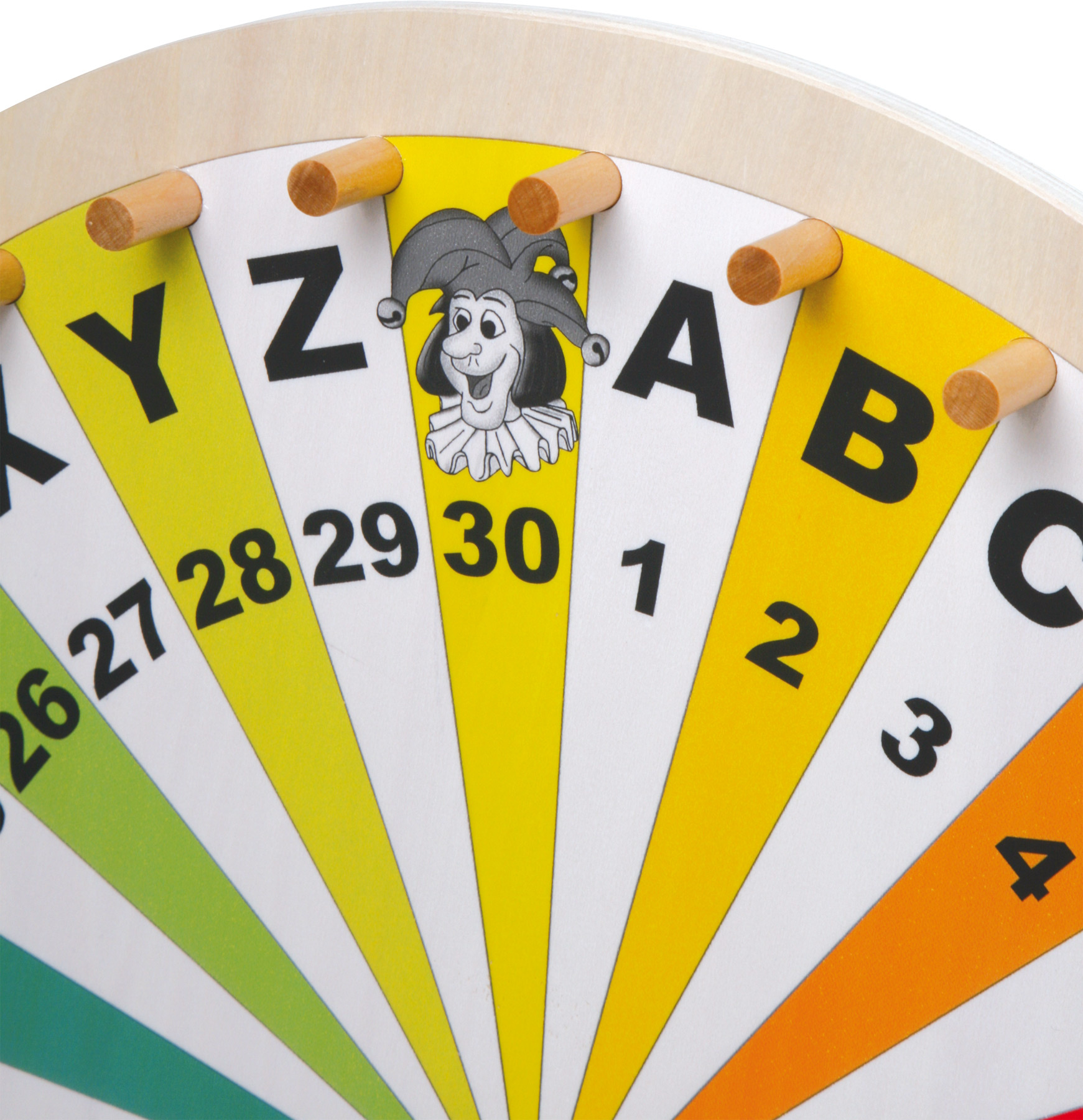 Toto kolo štěstí je skvělým doplňkem pro hry jako např. loterie, slovní hry nebo vymyšlené hry s figurkami od 1 do 30, písmeny od A do Z a také 4 žolíky.
