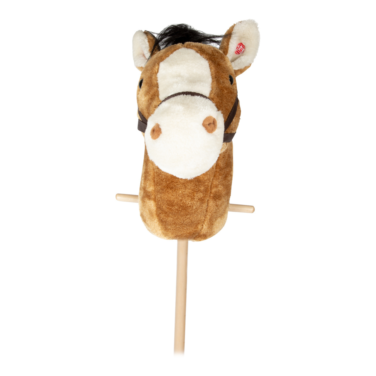 Cvalem do dětského pokoje! Mladí koňáci si tohoto koníka na tyči zamilují. Je vyroben z plyše a dřeva, má uzdu s otěžemi, na stranách malá madla. Zmáčkněte koníkovy uši a on začne řehtat. Na konci tyče jsou malá kolečka, takže je pohyb s koníkem pro děti jednodušší. Baterie nejsou součástí balení. Ať už si hrají na rytíře nebo parkurového jezdce, s tímto koníkem si užijou mnoho radosti.
