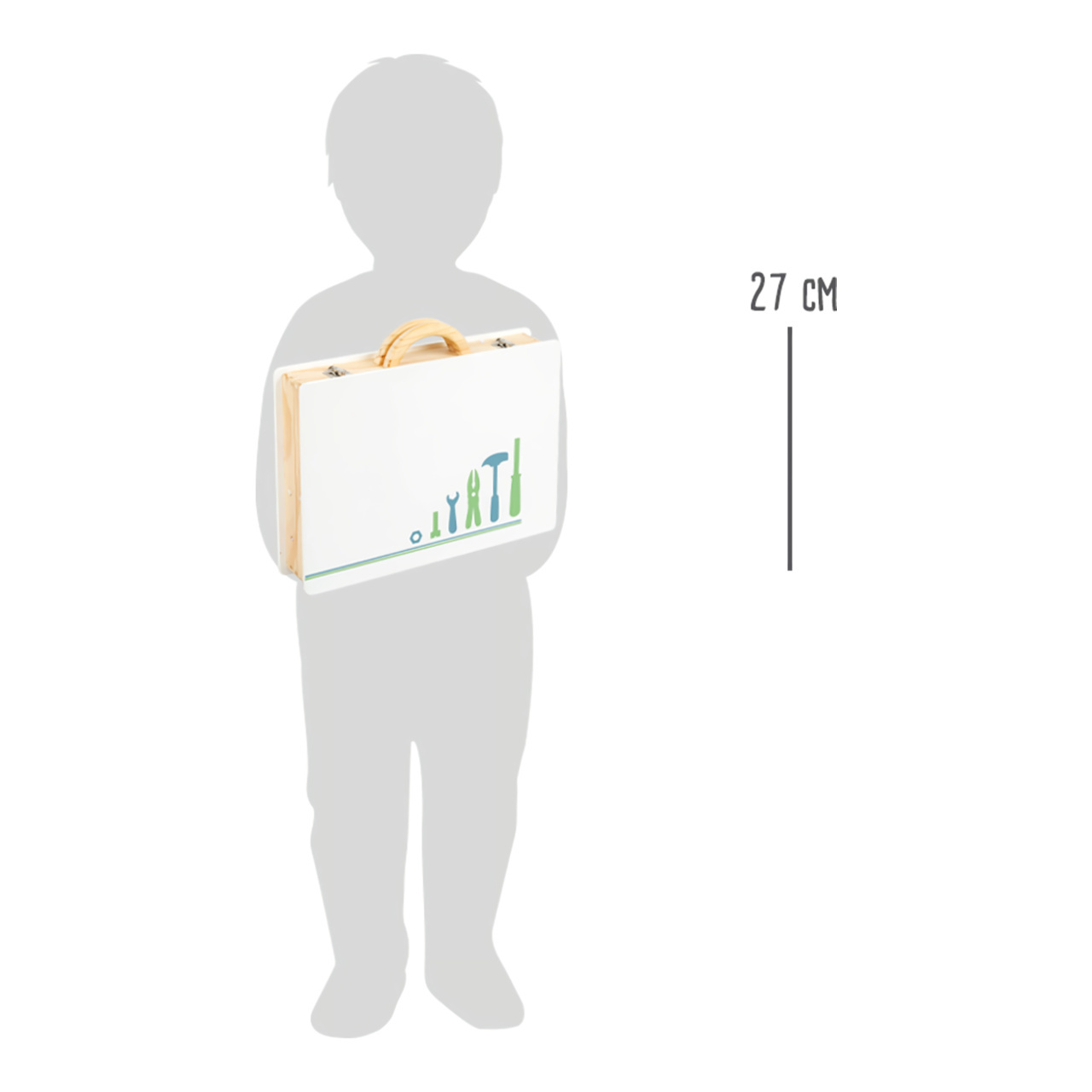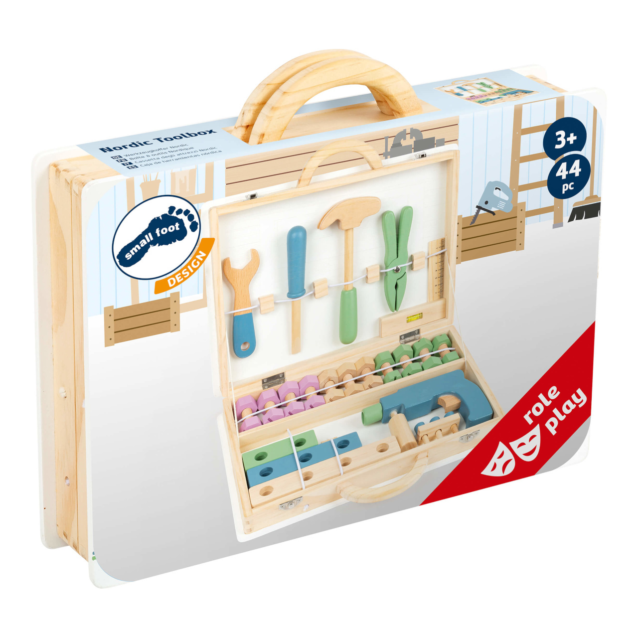 Dejte průchod nadšenému kutilství! Malí řemeslníci i řemeslnice se pomocí kufříku s nářadím stanou nenahraditelnými profesionály. Naleznou v něm všechny nezbytné nástroje, od úhelníku s funkční vodováhou, až po maketu vrtačky s několika magnetickými nástavci. V příslušenství je zahrnuto také množství barevných stavebnicových dílů s robustními šrouby a maticemi. Jejich prostřednictvím mohou děti dát průchod své fantazii, vytvářet rozmanité konstrukce, a tak rozvíjet svou zručnost i další užitečné dovednosti. Pevný a odolný kufřík je uvnitř vybaven gumovými popruhy, díky nimž mohou být všechny součásti vždy bezpečně zajištěny a přehledně uspořádány. Je opatřen spolehlivým kovovým zavíráním a madlem přizpůsobeným ručkám malých šikulů. Souprava je vyrobena z kombinace překližky a masivního dřeva, může proto nabídnout vysokou životnost naplněnou bezpočtem těch nejužitečnějších zlepšováků. Lze vybírat z dvojice různě dekorovaných a barevných provedení, dílenský Miniwob a skandinávský Nordic.