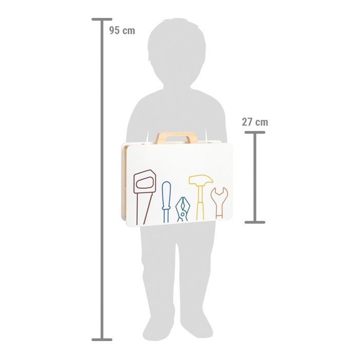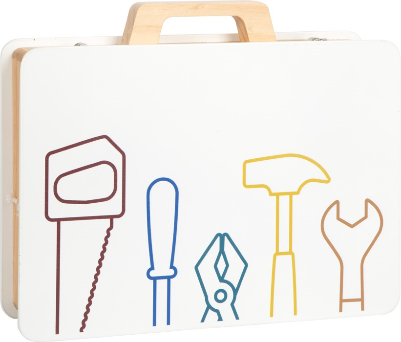 Pozor všichni malí řemeslníci i řemeselnice! S tímto dřevěným kufříkem si děti mohou hrát na kutily. Realistické nářadí a doplňky vybízejí ke kreativní hře a rozvojí fantazii. Pomocí jednotlivých stavebnicových dílků mohou děti poskládat rozmanité konstrukce (např. závodní auto, vrtulník, větrný mlýn nebo letadlo) a rozvíjet tak svou zručnost. Pevný a odolný kufřík je uvnitř vybaven gumovými popruhy, díky nimž jsou jednotlivé kousky nářadí na svém místě přehledně uspořádány. Také je kufřík opatřen kovovým zavíráním, které udrží vše bezpečně uložené a dřevěnou rukojetí přizpůsobenou ručkám malých kutilů.