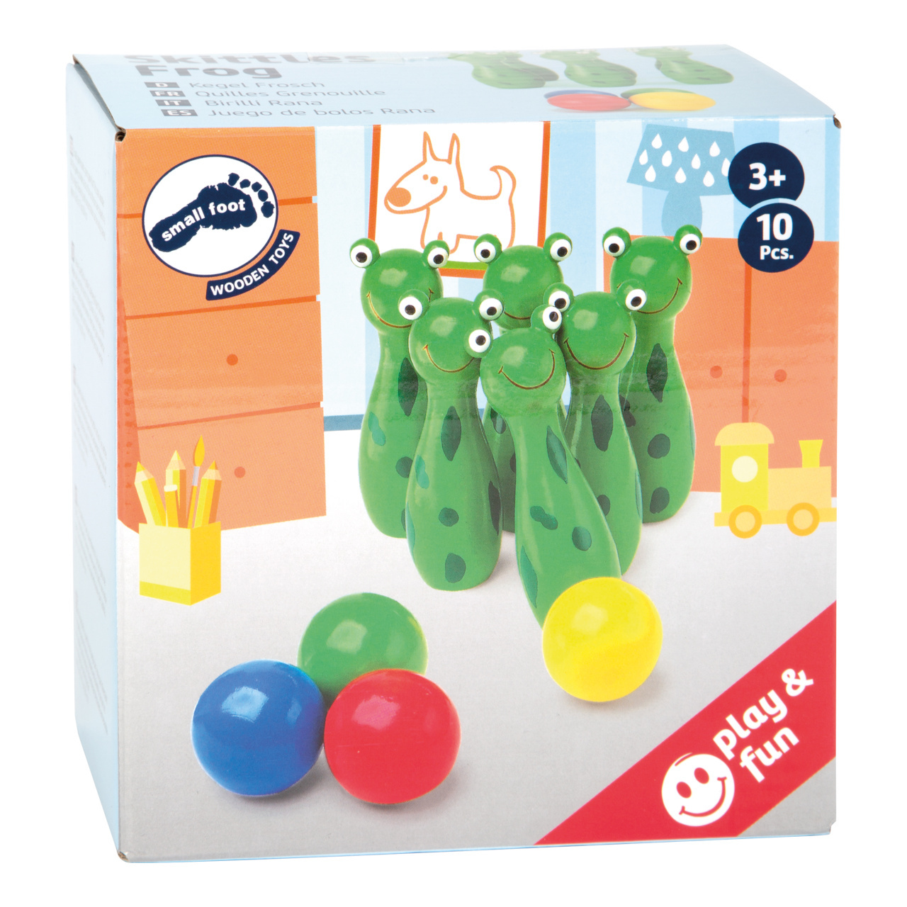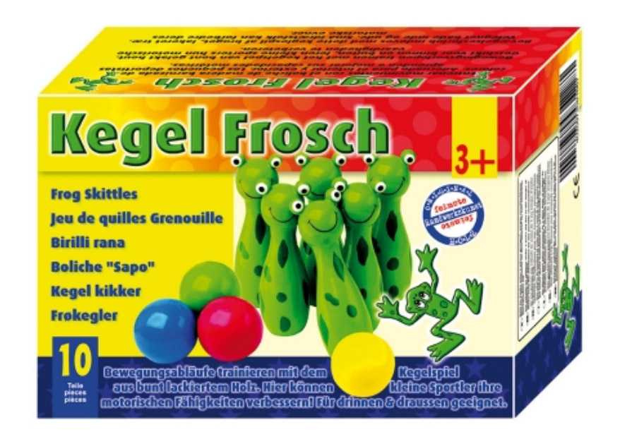 Tato malá dřevěná kuželková hra poskytuje spoustu zábavy, protože kuželky mají vzhled žabek. Obratnost a koncentraci lze snadno trénovat. Veselé žabky potěší naše nejmenší při hraní!