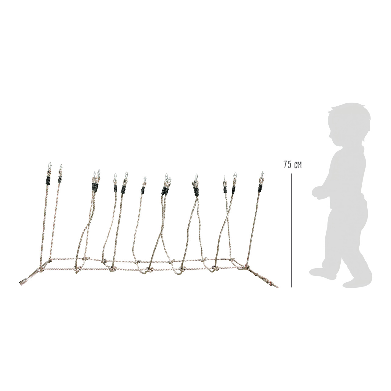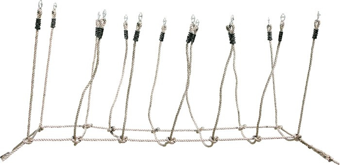 Prověřte a trénujte odvahu, sílu a smysl pro rovnováhu svých dětí pomocí provazového mostu. Skvěle doplní zahradu, nebo dětské hřiště, stačí natáhnout mezi dva stromy. Robustní a poddajné lano je odolné povětrnostním vlivům. Jeho konce jsou opatřeny kovovými průvleky, s jejichž pomocí je zavěšení velmi snadné a variabilní.