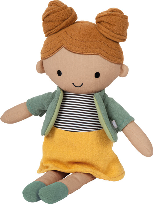 Mája má na sobě žlutou sukni, pruhovaný top a odnímatelnou bundu, kterou lze snadno oblékat a svlékat - ideální pro podporu jemné motoriky i samostatnosti. Panenku lze prát v ruce, zachovává si tvar i hygienu a je připravena na nespočet hodin hraní plných fantazie a blízkosti.