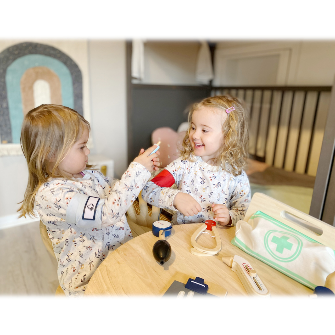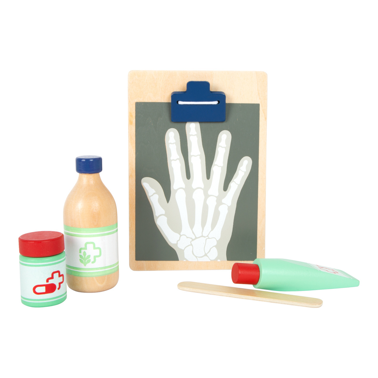 S touto standardní lékařskou brašnou budou mladí nadějní lékaři perfektně vybaveni. Brašna je vyrobená z měkkého textilu, je pěkná na pohled a také velmi funkční. Lze lehce otevřít díky magnetům, je vyrobena ze dřeva. Uvnitř brašny najdete všechno vybavení pro představivé ošetření pacientů: stetoskop, teploměr, stříkačku a mnoho dalšího – vše vyrobeno z pevného dřeva! Nejlepšími doplňky jsou zřejmě tlakoměr s manžetou a balónkem a otoskop s lupou. Tento obsáhlý set lékařských hraček obsahuje mnoho „opravdových“ lékařských nástrojů a přístrojů, s kterými si děti opravdu vyhrají. Ilustrace na lékařských pomůckách dětem poradí rozeznat nástroje a také jim možná zjednoduší jejich použití.