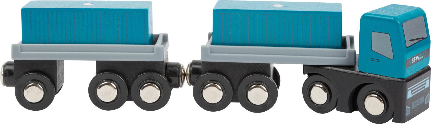 Skvělá zábava pro malé kormidelníky, která nesmí chybět v žádném pokojíčku! Tato hrací sada obsahuje základní desku s kolejemi pro vláčky s mostem a pohyblivým magnetickým jeřábem. Součástí sady je také kontejnerová loď s dvěma remorkéry, které k ní jsou přivazány provázkem. Díky magnetům na kontejnerech je možné jeřábem přemisťovat náklad z místa na místo.