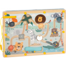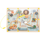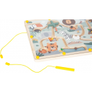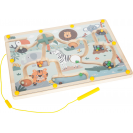 Toto magnetické bludiště vyrobené ze 100% FSC® certifikovaného dřeva nabízí dlouhotrvající zábavu s krásnými ilustracemi ze zvířecí říše a chytrým herním principem: barevné kuličky se pomocí magnetického pera vedou spletitými cestičkami a přiřazují se ke správným barevným políčkům a číslům. Na děti čekají různé výzvy jako otáčecí plošiny a slepé uličky. Cílem hry je dostat kuličky na správná místa podle barvy a počtu. Čísla v cílových políčkách odpovídají počtu kuliček dané barvy. Díky upevňovacímu pásku, který drží magnetické pero na místě, je hračka ideální i na cesty.