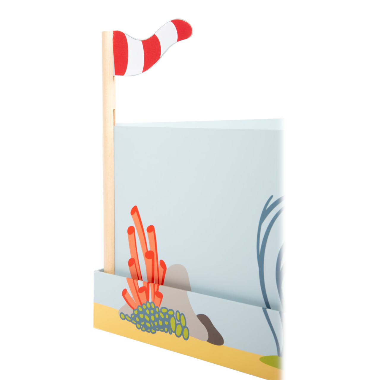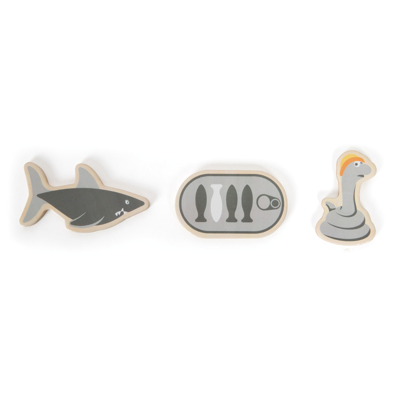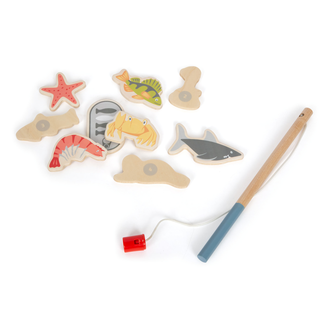 Vydejte se na moře rybařit s roztomilými zvířátky! Roztočte střelku kompasu, a vylosujte si tím mořského tvora, kterého máte ulovit. Chytáním magnetickou udičkou rozvíjejte jemnou motoriku a trpělivost, a to až se třemi přáteli, nebo v kruhu rodiny! Dílky hry jsou vyrobeny z odolné překližky a spolu s udičkami jsou uloženy v praktické, barevně ilustrované kartónové krabičce, která zároveň slouží jako hrací plocha.