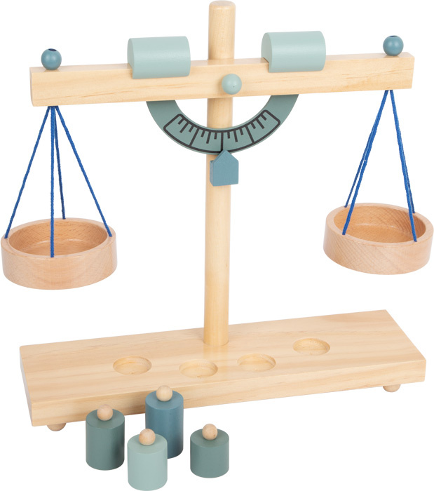 Važte jako na farmářském trhu! S touto stabilní dřevěnou miskovou váhou mají malí obchodníci po ruce správné vybavení, když váží zboží pro své zákazníky v obchodě s potravinami nebo v dětském stánku. Čtyři různé závaží pomáhají určit celkovou hmotnost a dvě posuvná protizávaží slouží k úpravě váhy. Děti hravou formou získají cit pro vážení a rovnováhu. Při obsluze zákazníků v obchodě s potravinami se procvičují sociální dovednosti a podporuje se aktivní hraní rolí. Tato hrací sada proto patří do každého obchodua stánku!