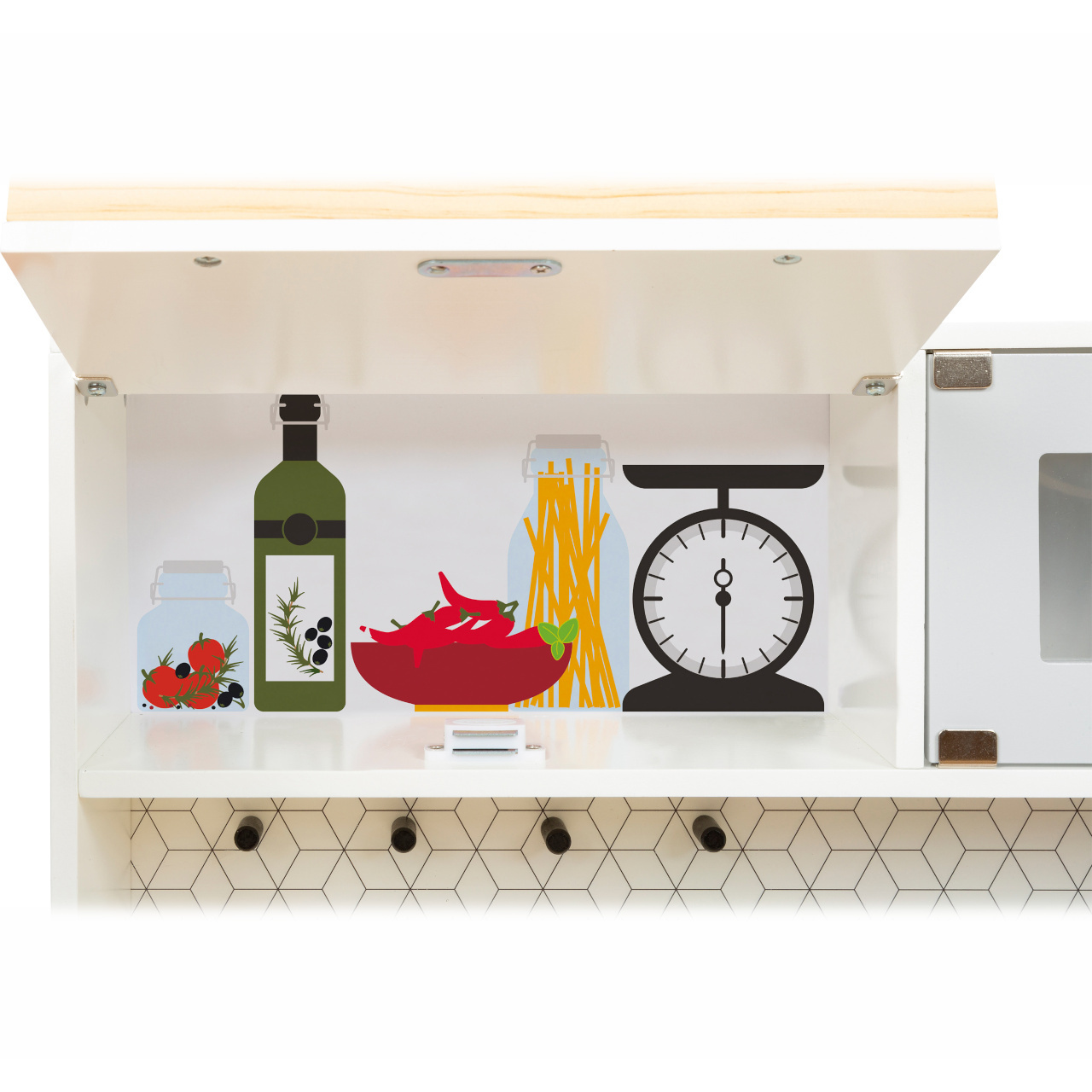 Pro všechny kuchaře a hospodyně! Tato velká, plně vybavená dětská kuchyňka nabízí všechny spotřebiče moderní domácnosti. Díky svému stavebnicovému systému lze sestavit jako rohovou kuchyň, nebo kuchyňskou linku s fungujícím ostrůvkem, nabízí tak mnoho prostoru a možností i pro hru více dětí najednou. Otočné knoflíky cvakají a varná deska s bateriově napájeným (baterie nejsou součástí balení) světlem a zvukem zaručují realistické potěšení ze hry. Skříňky zajišťují dostatek úložného prostoru a jsou vybaveny dvířky. Součástí je vysoce kvalitní nádobí vyrobené z kovu. Pro kuchyňku se nabízí také velké množství doplňkového příslušenství. Výrobek vyžaduje montáž, dodáváno s obrázkovým návodem k sestavení.