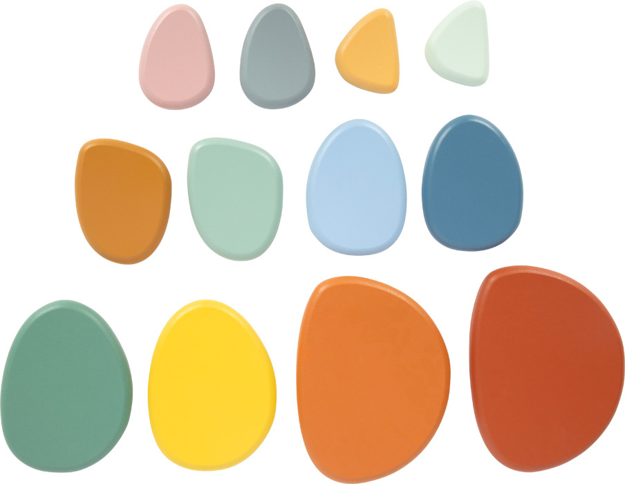 Tato sada dvanácti balančních kamenů z FSC® 100% certifikovaného dřeva v moderních, tlumených barvách podporuje klid, koncentraci a hravost v každém dětském pokoji. Hra s nimi podporuje rozvoj motoriky, trpělivosti a vnímání rovnováhy. Děti mohou kameny balancovat, stavět na sebe, třídit nebo počítat, a přitom si hravou formou procvičují jemnou motoriku, soustředění i kreativní myšlení. Inspirováno Montessori pedagogikou: balanční kameny vedou děti k všímavé a klidné aktivitě, ať už si hrají samy nebo společně s ostatními. Jde o všestrannou hračku s meditativním účinkem, která nabízí nekonečné možnosti hry a objevování.