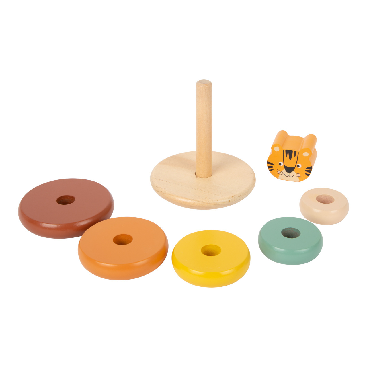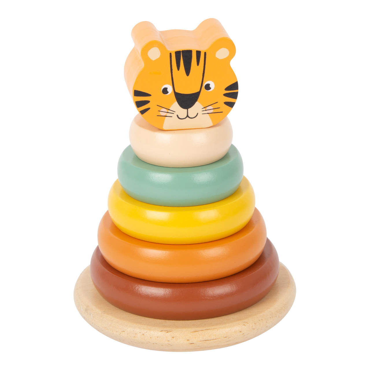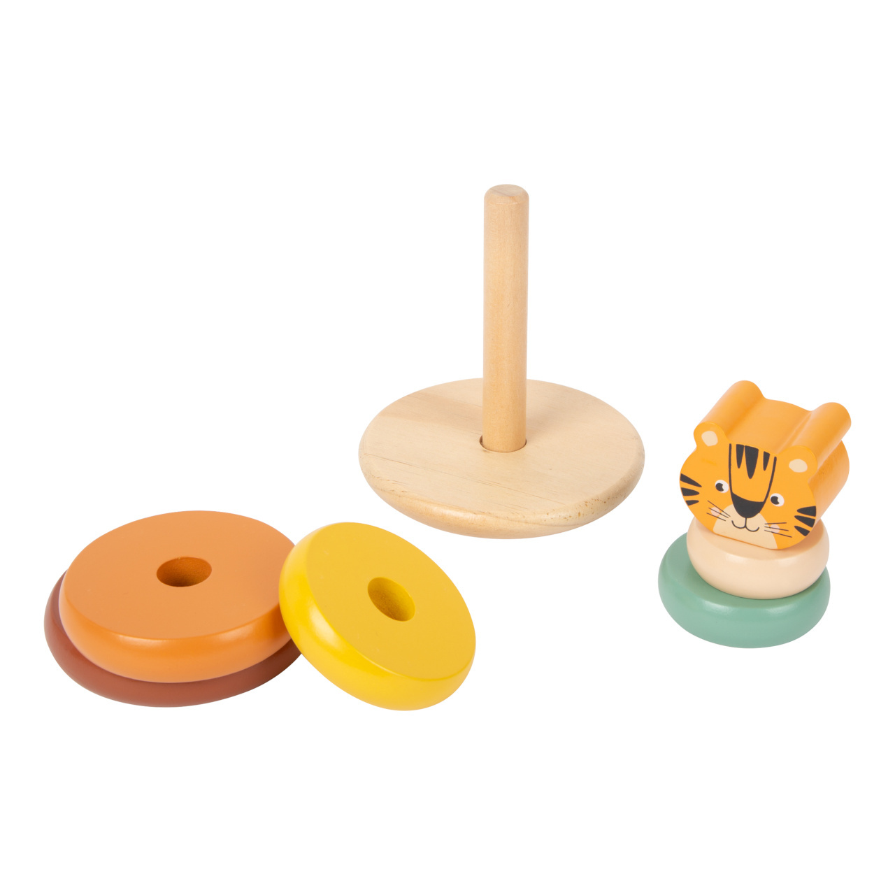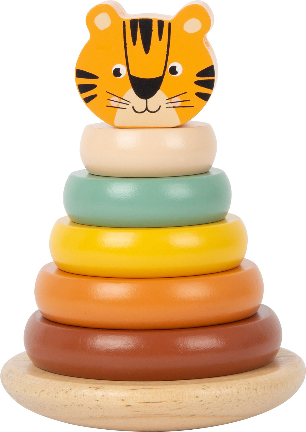 Nasazovací věž nebo rozviklaná pyramida? Obojí! Tento přátelský tygr se ukáže v plné kráse jakmile děti poskládají všechny dřevěné kroužky na sebe ve správném pořadí. Nasazovací zvířátko o 7 kusech trénuje koordinaci ruka-oko, také porozumění tvarům a velikostem. Rozviklaná věž, která je vzdělávací hračkou pro děti. Motorická hra v moderních barvách vyrobená z robustního dřeva.