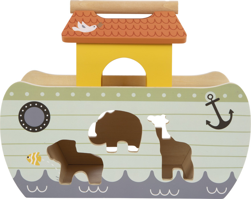 Vydejte se na velké dobrodružství Noemovy archy. Robustní dřevěná loď s madlem pro snadné přenášení a odnímatelným víkem. Tato loď v podobě Noemovy archy je fascinující herní svět, který dětem přináší pestrou a dlouhotrvající zábavu. Hra má 15 dřevěných figurek, které jsou snadno uchopitelné pro dětské ruce. Obsahuje 6 párů zvířátek, 2 lidské figurky a žebřík. Všechny figurky zvířat perfektně zapadají do otvorech v lodi a pomáhají tak trénovat motorické dovednosti. Díky odnímatelnému víku s rukojetí lze loď snadno otevřít a figurky zase vyjmout.