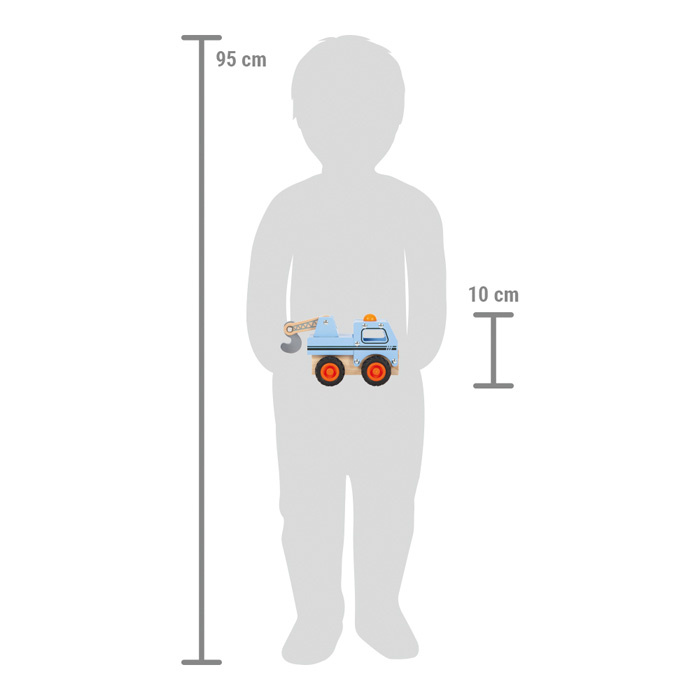 Na robustních pogumovaných kolech je tento odtahový vůz vyrobený z certifikovaného dřeva FSC® všude tam, kde je třeba provést odtah porouchaného vozidla. Díky pohyblivému nakládacímu jeřábu s hákem, který funguje jako tažné zařízení, je v dětském pokoji možná kreativní a realistická zábava. Díky zaobleným hranám a okenním otvorům se dětem autíčko snadno uchopuje a pohybuje s ním. Ideální pro malé milovníky aut. Dětský design s malovanými detaily a obličejem dodává autíčku osobitost. Kabina řidiče nabízí dostatek místa i pro figurku na hraní, kterou lze umístit do přední části vozidla. Figurka není součástí balení.