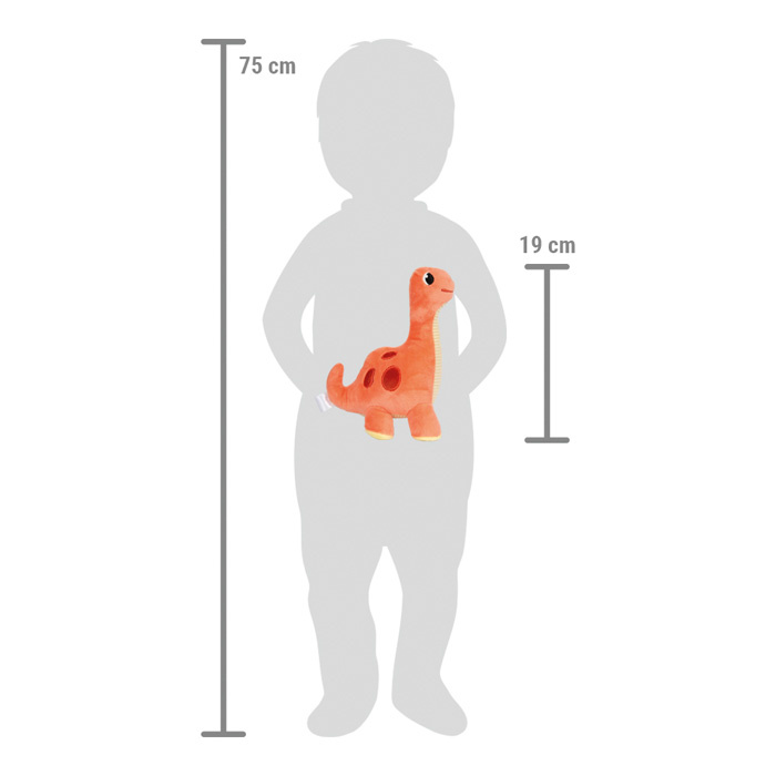 Tento roztomilý plyšový brontosaurus je hebký plyšový kamarád, který může Vaše dítě doprovázet po celé dětství. Miminka i větší děti se budou cítit v bezpečí, když se přitulí k měkkému a jemnému povrchu plyšového dinosaura. Strukturované manšestrové bříško povzbuzuje malé ručičky k dotýkání a zkoumání. Ať už je společníkem při usínání v postýlce nebo kočárku či kamarád na hraní, udělá radost všem malým milovníkům prehistorických obrů. Díky různým strukturám látky a pestrému barevnému provedení je příjemný na dotek i vizuálně působivý a podporuje rozvoj smyslového vnímání.