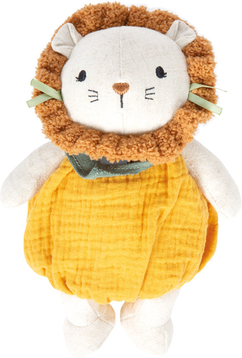 Tento roztomilý plyšový Lvíček je ideálním prvním kamarádem pro miminka a batolata. Hebký povrch, měkce polstrované tělo a dětem přizpůsobený design poskytují pocit bezpečí a pohodlí a zároveň podporují hravé objevování světa. Texturovaná mušelínová látka nabízí dětem zajímavý povrch, který láká k dotýkání, uchopování a přirozeně podporuje rozvoj smyslů i jemné motoriky. Ať už v postýlce, kočárku nebo na cestách, lví plyšák je vždy nablízku.