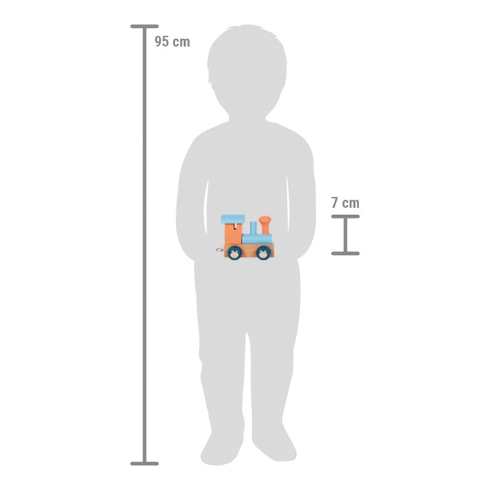 Tato lokomotiva v oranžovo-modré barvě patří do kolekce „polární vláček abecedy“ od firmy small foot. Lokomotiva může být součástí vláčku, který vytvoříte z vagónků, písmenek abecedy stejné řady.