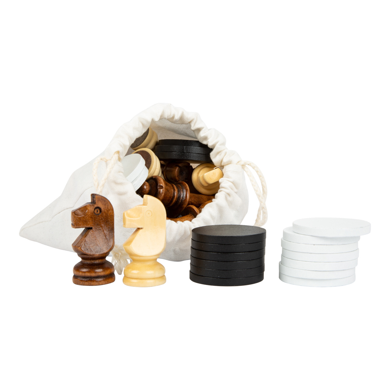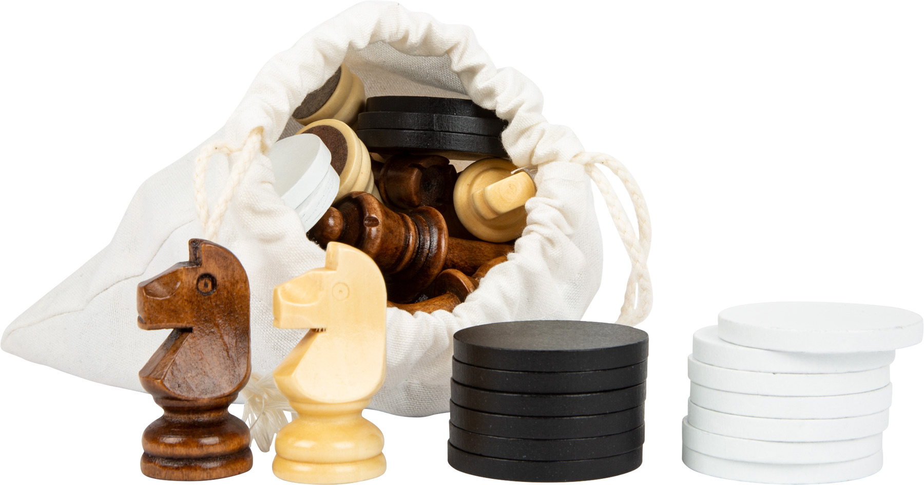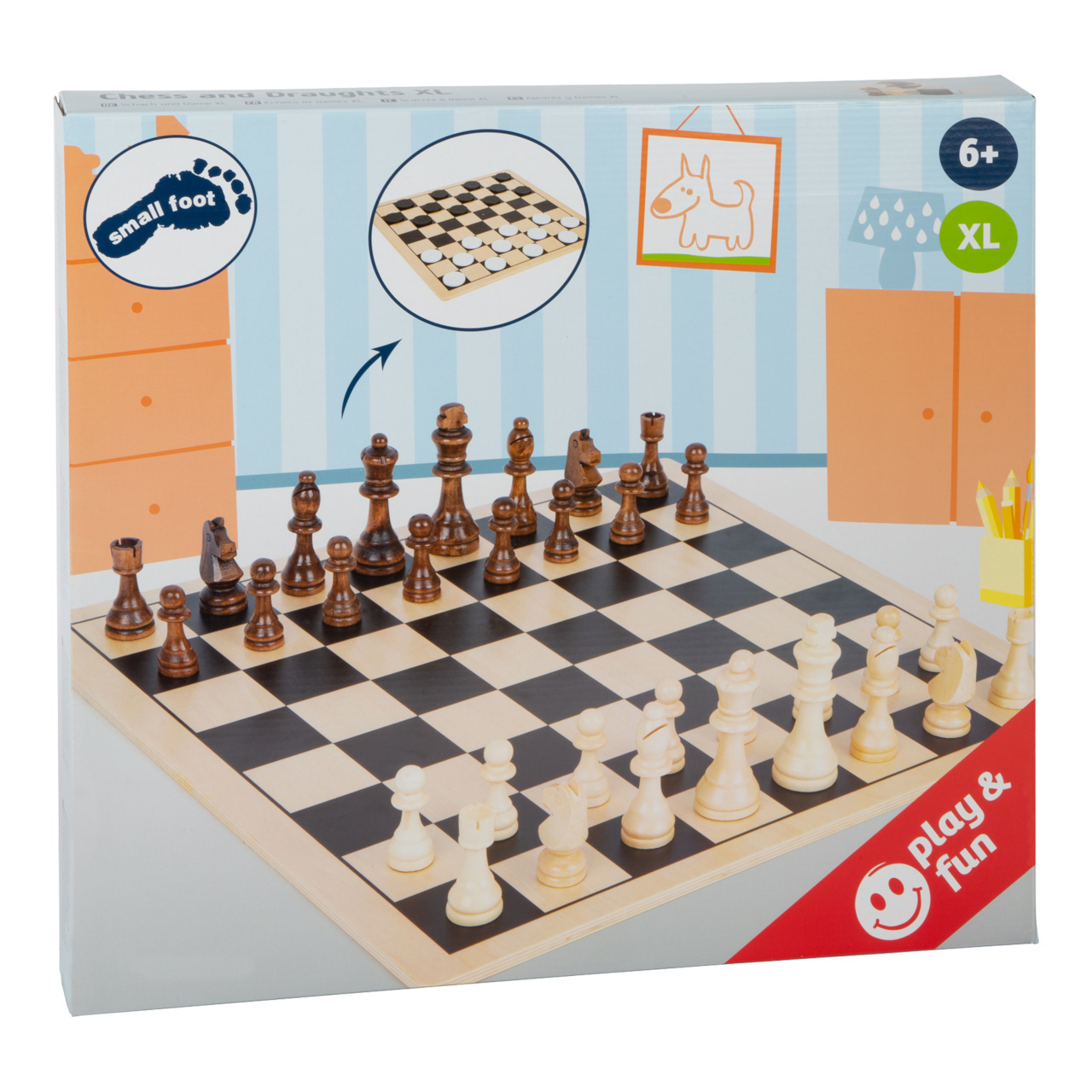 Při hře v šachy nebo dámu na velké dřevěné hrací desce je zapotřebí taktika, zručnost a promyšlené tahy. Mimořádně velké herní figurky usnadňují jejich umístění i hráčům s malýma nebo nejistýma rukama. Dodává se s látkovou taškou. Kdo udělá nejlepší tah? Tyto dvě extra velké klasické deskové hry slibují dvojnásobnou zábavu pro malé i velké. Dvě společenské hry, které vyžadují logické myšlení a soustředění a zároveň nabízejí maximální herní zábavu. Klasicky navržené šachové figurky a figurky na dámu lze bezpečně uložit do přiloženého látkového sáčku. Tato sada klasických her zaručuje velkou zábavu při hraní a nesmí chybět v žádném dětském pokoji.