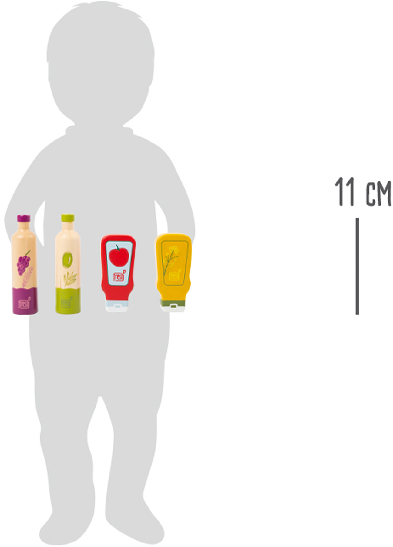To správné koření do dětské kuchyňky! Herní set obsahuje lahvičky z kvalitního dřeva v typických barvách daného produktu. Díky výrazným ilustracím na lahvi dítě jejich obsah snadno rozpozná. Set obsahuje ocet, olej, kečup a hořčici.