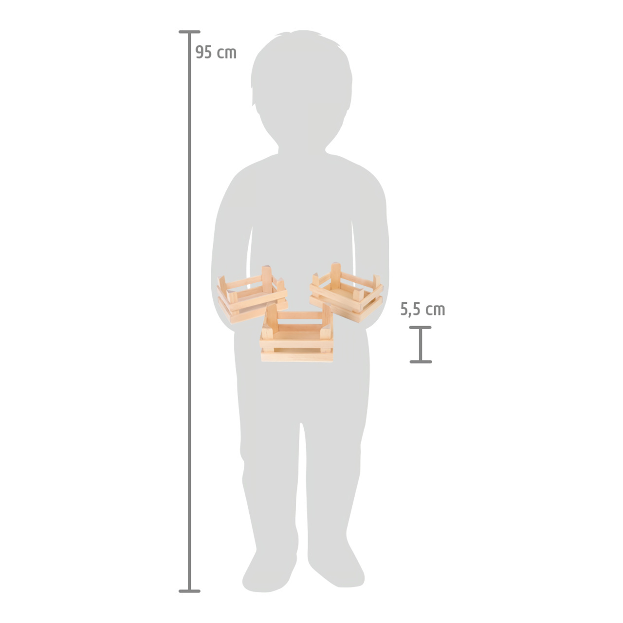 Pevné a odolné dřevěné bedničky jsou všestranně využitelné. Lze jimi doplnit některý z široké nabídky stánků ke hrám na prodavače, stejně tak ale mohou posloužit k třídění a udržování pořádku, ať už v dětském pokoji, nebo na zahradě. Díky přírodní úpravě je můžete natřít a nalakovat dle své fantazie a potřeb.
