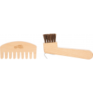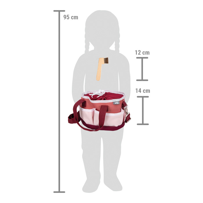 Pomůcky na čištění koní jsou dokonale přizpůsobeny potřebám mladých fanoušků koní, takže mladí jezdci mohou při hře popustit uzdu své fantazii. Pohodlná stahovací šňůrka umožňuje tašku doširoka otevřít, ale také úplně zavřít. Tuto tašku pro děti lze nosit za obě uši nebo nastavitelný ramenní popruh. S touto sadou péče se mohou děti starat o svého oblíbeného koně stejně jako profesionálové.