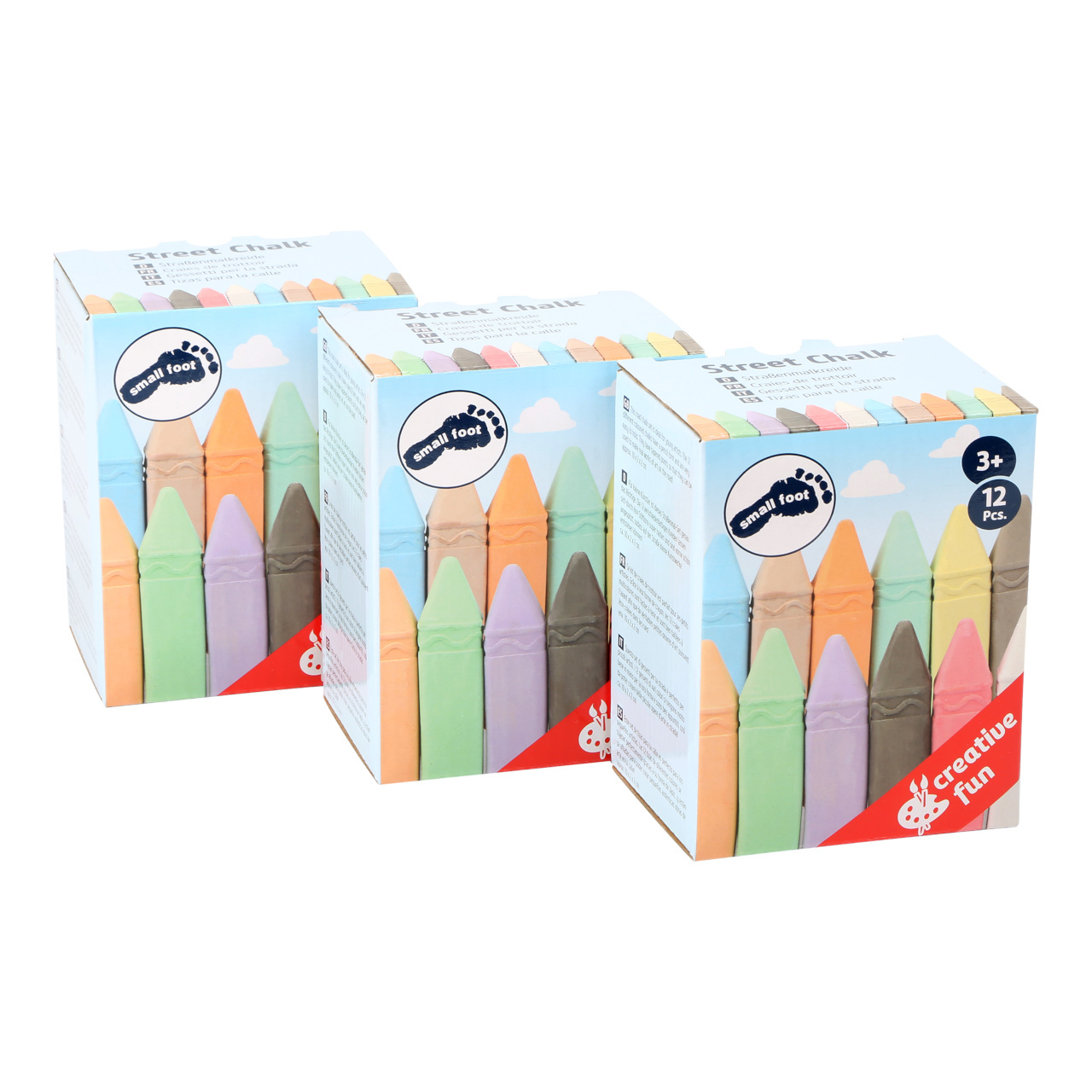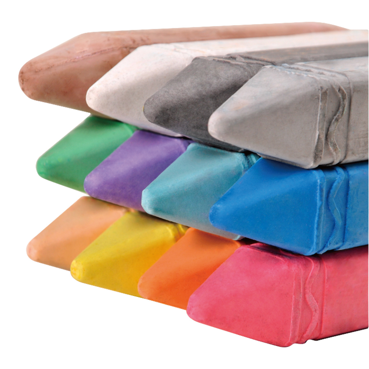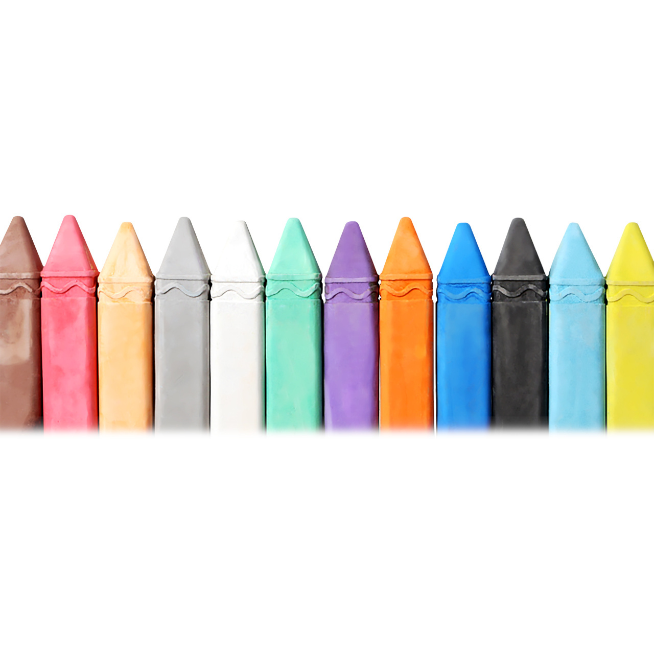 Sada kříd pro kreslení na chodník, tabuli, nebo i zeď. Široká paleta pestrých barev dětem umožní vytvářet poutavá umělecká díla. Křídy jsou velikostí přizpůsobeny dětským ručkám, zároveň však mají silný průřez, snadno se tak drží a nelámou se.