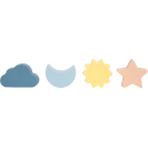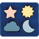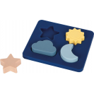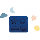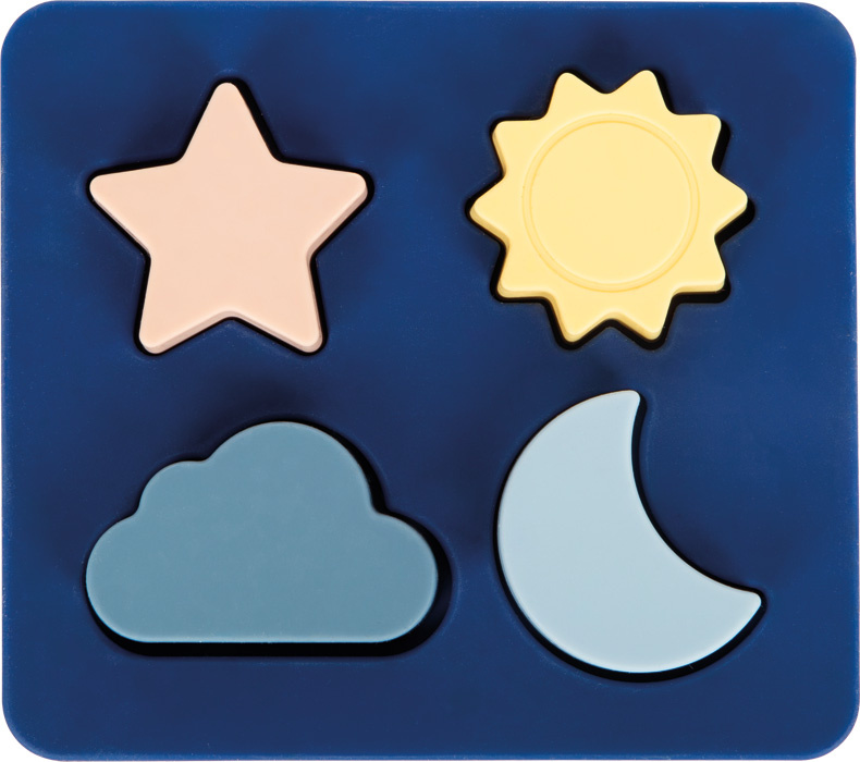 Toto roztomilé dětské puzzle ze 100% bezpečného silikonu bez BPA je ideální pro malé ručičky a zvídavé hlavičky. Skládá se ze 4 dílků ve tvaru slunce, měsíce, hvězdy a mráčku, které lze vkládat z různých stran – což nabízí mnoho hravých a vizuálně zajímavých kombinací. Puzzle je měkké, nerozbitné, bez zápachu a zcela netoxické, vyrobené z potravinářského silikonu, takže je zcela bezpečné i při kontaktu s ústy. Hodí se jak pro hraní doma, tak venku – třeba v písku, ve vodě nebo na cestách. Díky své kompaktní velikosti je skvělým společníkem do auta, na dovolenou nebo k babičce. Navíc se velmi snadno čistí.