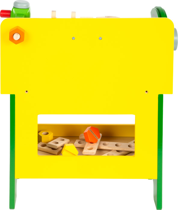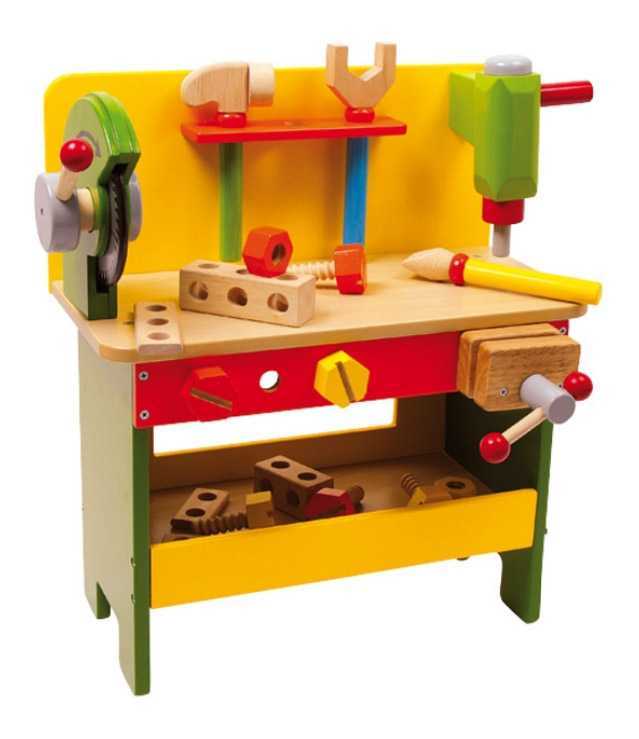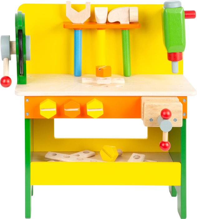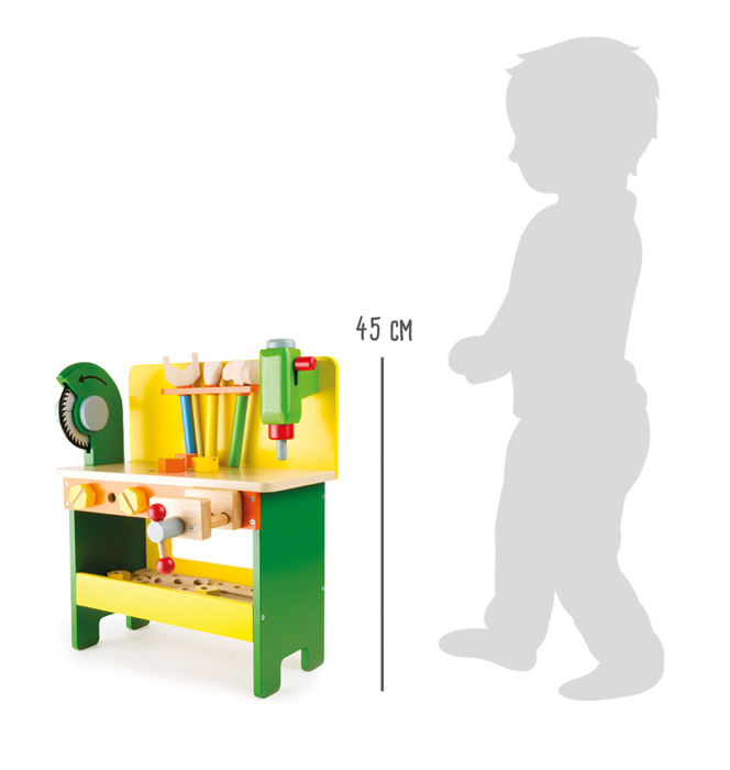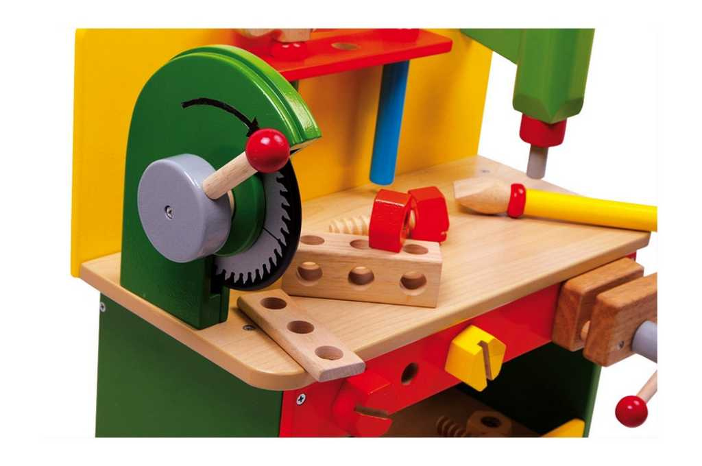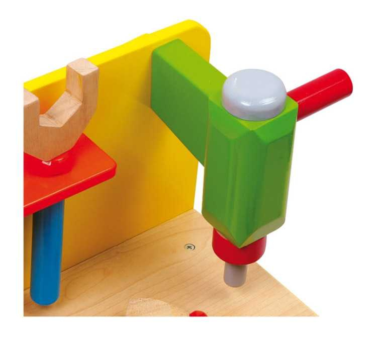 Zkuste Ponk Christian a připojte se k tisícům spokojených zákazníků, kteří už zažili jeho kouzlo. Je vybaven odnímatelnou vrtačkou, pilou, svěrákem, kladivem, šroubovákem, klíči, šrouby a děrovanými deskami. Je ideální hračkou pro malé řemeslníky! Pevná konstrukce z různých druhů dřeva, barevně lakovaná.