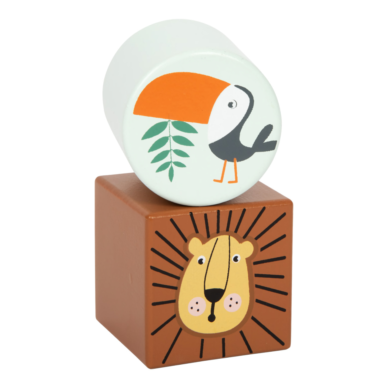 Obklopte se džunglí tvarů, barev a zvuků! Každá z kostek nabízí originální atrakci, která podněcuje dětskou zvědavost. Část sady je interaktivní, můžete se tak například podívat na svět složeným okem, či zrcátkem, nebo si hrát s rolničkami a chrastítky. Rozmanitými tvary, příjemnými odstíny a motivy divokých zvířátek mohou kostky dopomoci stimulovat představivost k roztodivným stavbám, nebo i příběhům. Jsou dřevěné, odolné a svou velikostí přizpůsobené ručkám nejmenších.