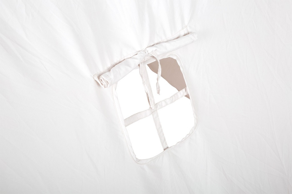 Boční okénko propouští dostatek světla, zatímco rolovatelný vstup umožňuje otevřený přístup dovnitř. Stan se tak snadno promění v tábor pro malé dobrodruhy, domeček pro panenky a plyšáky nebo klidný čtecí koutek.