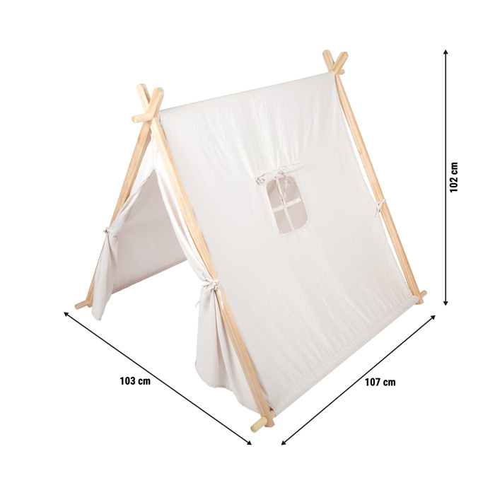 Hrajte si, sněte, odpočívejte. Tento stylový herní stan pro vnitřní použití z pevného dřeva a kvalitní látky je dokonalým útočištěm pro nápaditou a kreativní hru v dětském pokoji. Robustní dřevěná konstrukce a jemný látkový potah vytvářejí útulné místo pro hraní, čtení i mazlení.