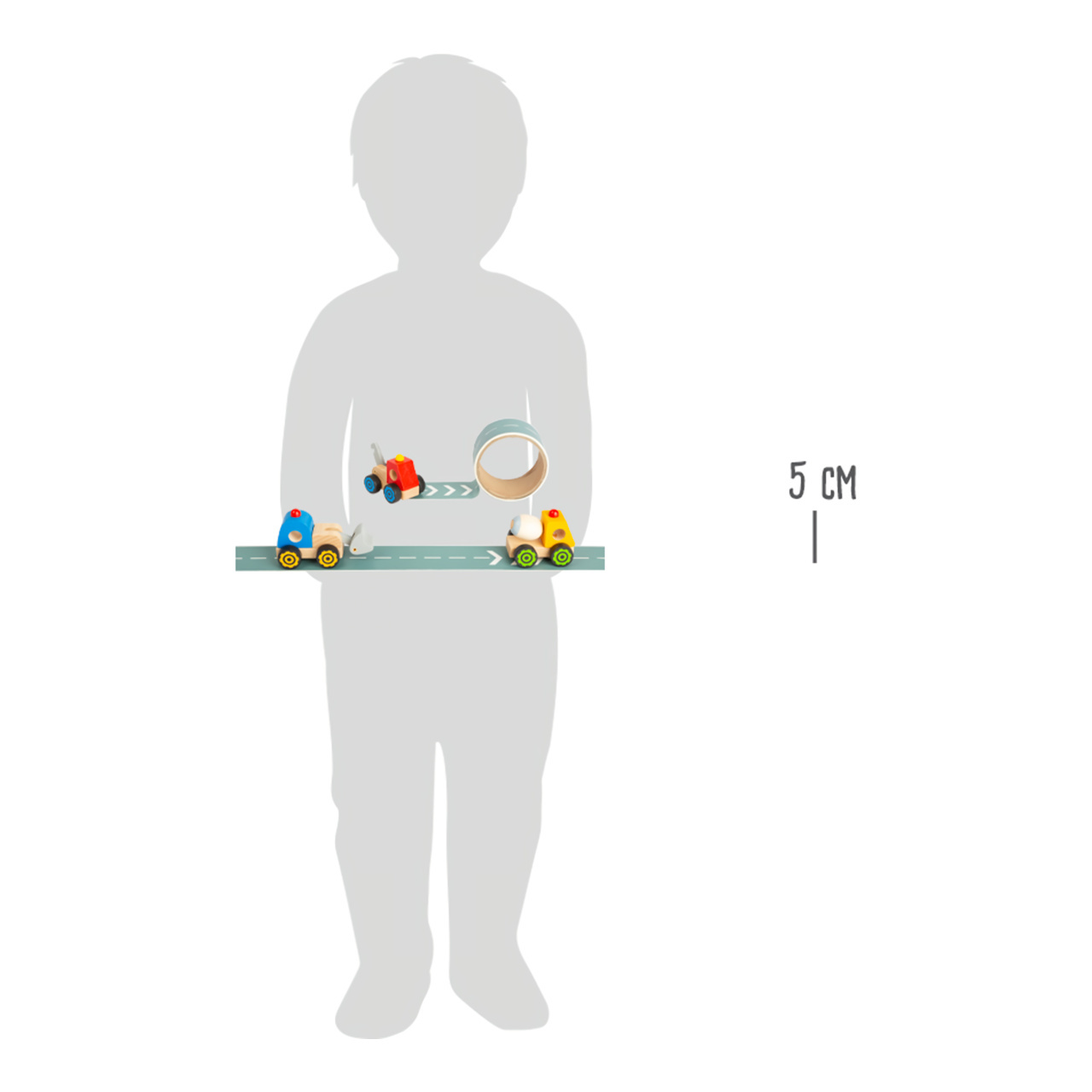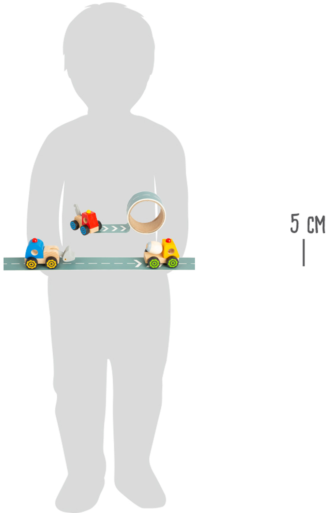 Rozměry: 6,5x4,5x5 cm Věk: 3+ Materiál: dřevo Cesta se vytvoří nalepením pásky