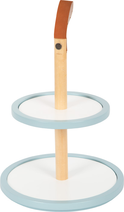 Lahůdky do dětské kuchyňky. Tento stojan se čtyřmi košíčky zve malé cukráře k aktivnímu hraní a prezentování lahodných muffinů. Stojan má dvě patra, které slouží k vystavení cukrovinek ve vrstvách. Systém kombinovatelných podstavců a krémových vršků umožňuje široké možnosti kombinací. Jednotlivé dílky společně drží pomocí integrovaných magnetů. Sada je doplněna o dvojitou sušenku, jahodový řez, borůvky a narozeninovou svíčku, kterou lze dorty ozdobit. To povzbudí chuť na čaj s panenkami, medvídky atd.