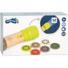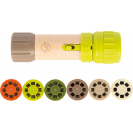 Rozsviťte svět objevů! Tato moderní objevitelská hračka 2 v 1 kombinuje funkci svítilny a obrazového projektoru. Jako svítilna poskytuje světlo ve tmě, zatímco jako projektor zobrazuje poutavý vzdělávací obsah na stěnách, stropech nebo podlahách. Dětská svítilna má ergonomický tvar, je vyrobena z robustního plastu a doplněna rukojetí z přírodního dřeva. Součástí je šest vyměnitelných obrázkových disků, které představují různá vědecká témata – například vývojový cyklus žab, motýlů a pampelišek, listy a plody stromů, zvířata a jejich stopy či souhvězdí. Ideální pro mladé přírodovědce!
