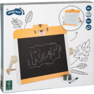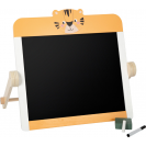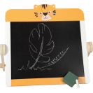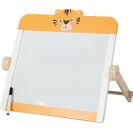 S touto nádherně navrženou oboustrannou tabulí 2 v 1 se každý stůl promění v kreativní místo! Křídová a magnetická tabule je vyrobena z odolného dřeva s certifikací FSC® a zve děti ke kreslení, psaní prvních písmen nebo počítání jednoduchých příkladů. Jedna strana je klasická tabule na křídu, druhá slouží jako bílá mazací tabule pro psaní fixem. Součástí balení je bílá křída, tabulový fix, houbička s dřevěnou rukojetí, která skvěle padne i do malých dětských ruček. Díky tomu si děti mohou začít hrát a tvořit hned po vybalení! Roztomilý motiv safari tygříka podporuje představivost a inspiruje k různým hrám na školku, školu nebo učení. Sklopný stojánek umožňuje snadné postavení na stůl a zároveň úsporné složení při uložení. Ať už v dětském pokoji, obýváku, nebo na cestách. Tato tabule podporuje kreativitu, rozvoj dovedností i radost z objevování kdekoliv. Spojením tabule na křídu, mazací tabule a magnetické plochy vzniká skvělá učící pomůcka a zábavná hračka v jednom. Vše potřebné je součástí balení. Stačí rozložit a začít si hrát!