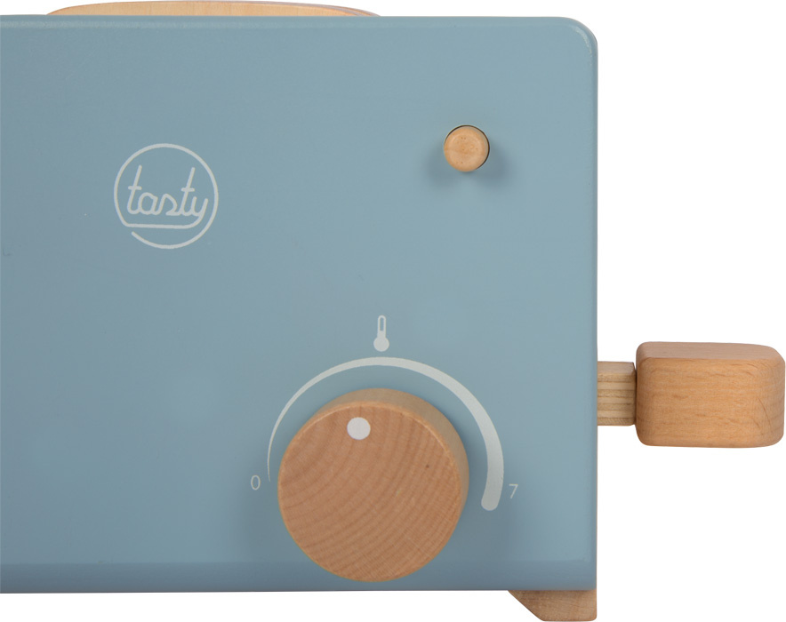 S tímto topinkovačem a jeho příslušenstvím bude každá snídaně připravená v dětské kuchyňce hitem! Má vyskakovací funkci a jemný design v kouřově modré a bílé, hračka má také mnoho přírodního dřeva. Mezi bohatým příslušenstvím najdete plátky toastového chleba, nůž, máslo, marmeládu, což pomůže při realistické hře! Topinkovač má otočná a pohyblivá tlačítka, páčku.