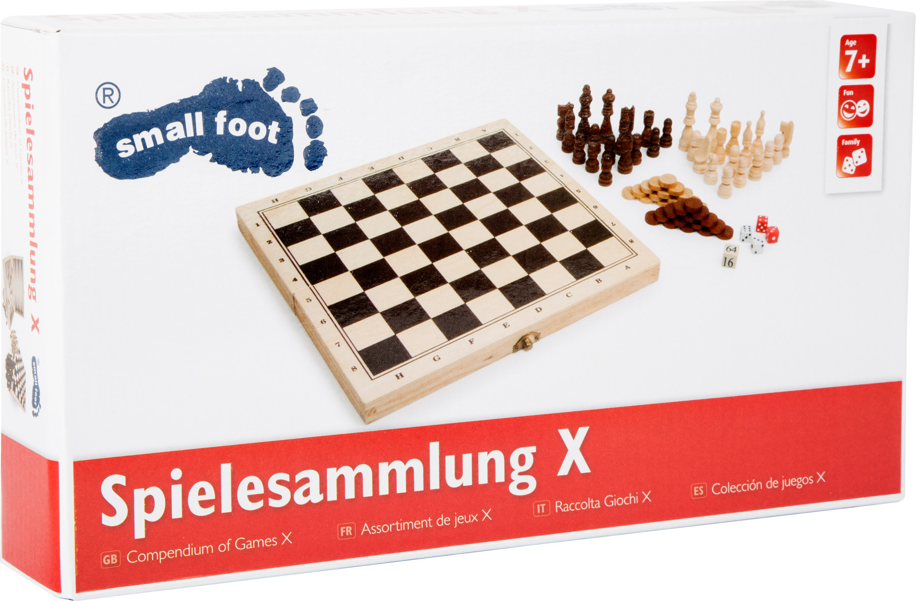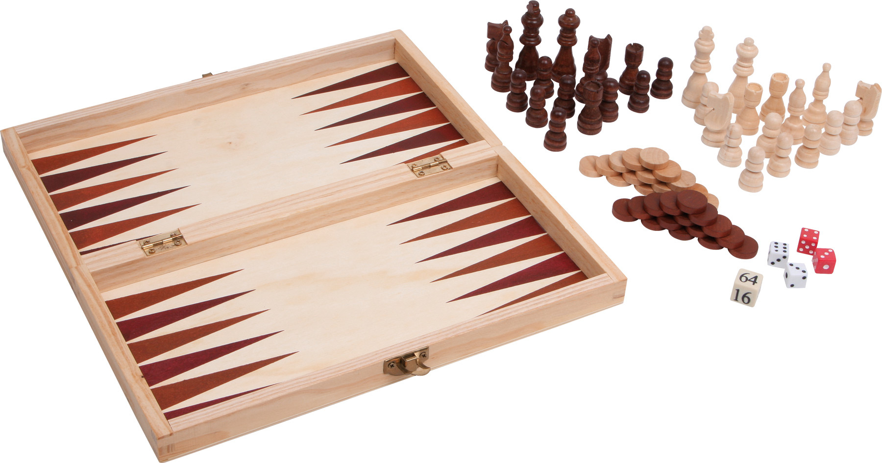 Soubor her pro celou rodinu se třemi klasickými společenskými hrami jako šachy, dáma nebo vrhcáby. Dřevěná "truhlička" zároveň slouží jako hrací deska (jak zvenčí, tak zevnitř). Perfektní řešení pro líné deštivé odpoledne!