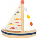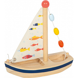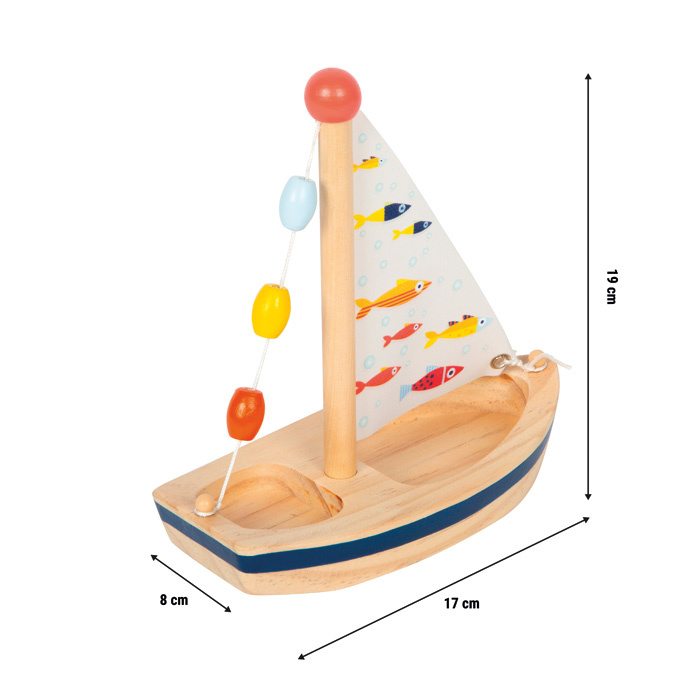 Tato dřevěná plachetnice zve děti do světa dobrodružných námořních her. Díky své praktické velikosti je ideálním společníkem pro vodní radovánky – ať už doma ve vaně, nebo na letním výletě k vodě. Jako dřevěná hračka podporuje udržitelný způsob hraní a představuje skvělou alternativu k plastovým lodím. Plachta s roztomilými ilustracemi rybiček, malé dřevěné korálky jako dekorativní prvek, dostatek prostoru na palubě pro figurky a pevné zpracování dělají z této lodi odolnou a zároveň stylovou hračku. Tato ekologická vodní hračka je malá, lehká a ideální na cesty. Po každém použití ji stačí důkladně osušit – a může znovu vyplout na další dobrodružnou plavbu. Skvělý tip na dárek pro všechny malé milovníky vody.