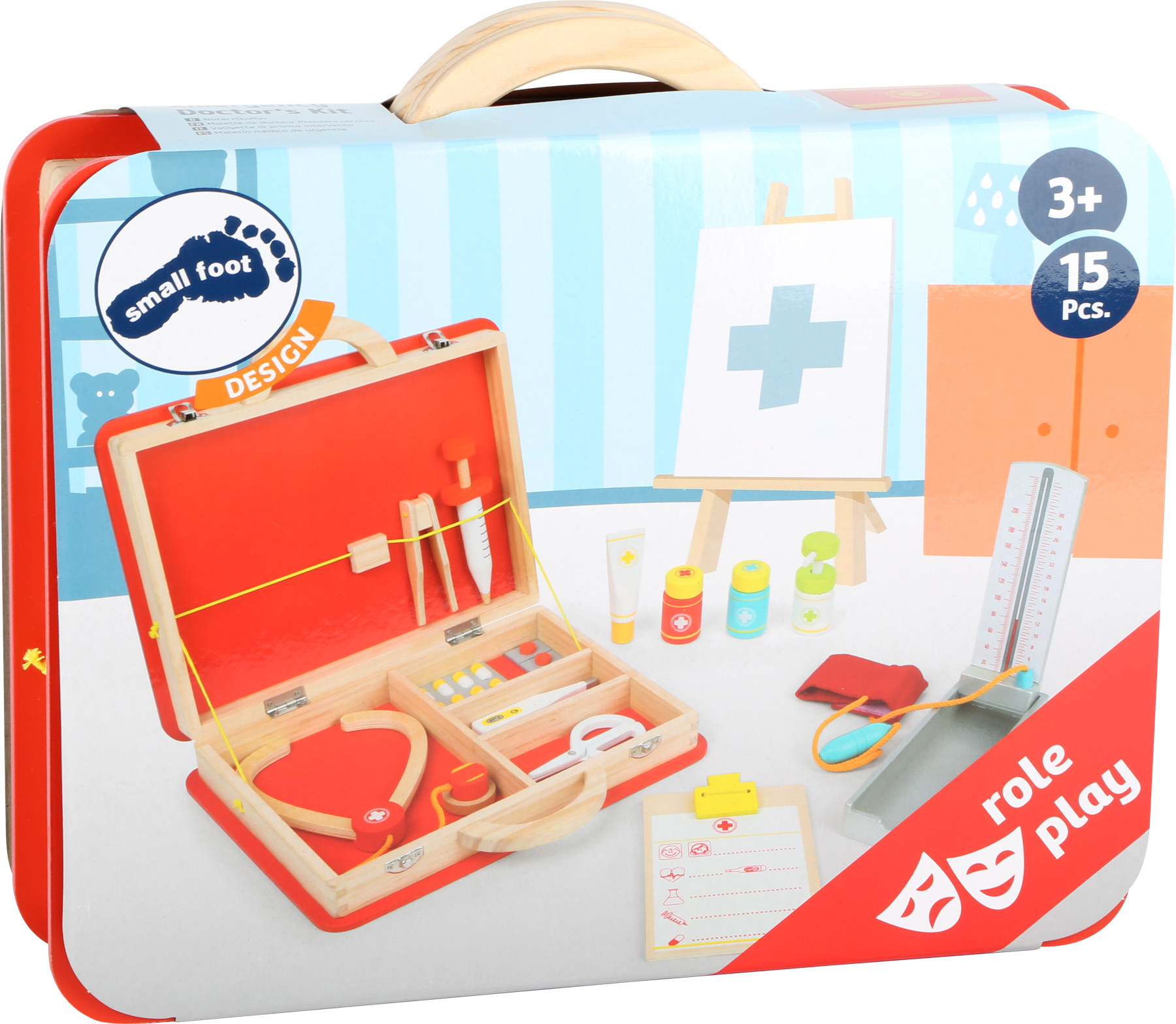 Trendy lékařská souprava v kufříku pro mladé doktory a doktorky. Všechny předstírané lékařské úkony u lékaře, nebo na pohotovosti, zvládnou děti v dětském pokojíčku s tímto dřevěným lékařským kufříkem.