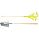 • kovového rýč, hrábě s dřevěnými násadami