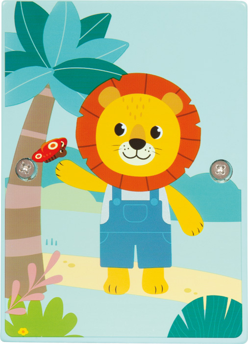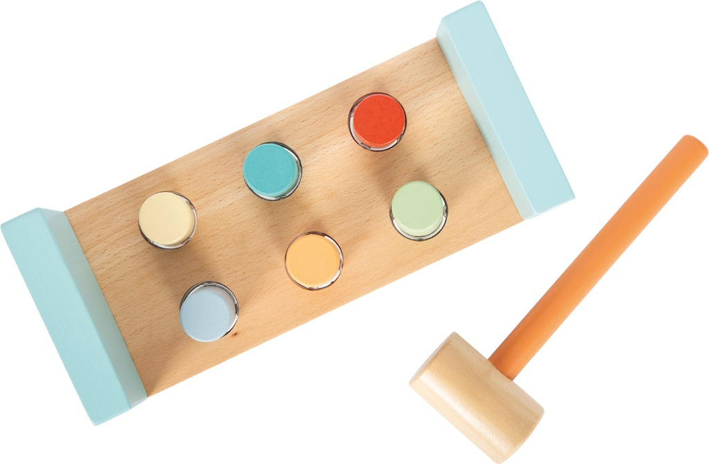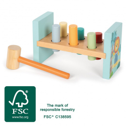 Jakmile jsou všechny válečky zatlučené, stačí zatloukačku otočit a zábava začíná znovu! Veselé motivy zvířátek z džungle a barevné provedení podporují dětskou fantazii a zvědavost.