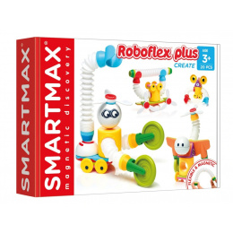 Nové, flexibilní, roztažitelné magnetické tyčky dodávají herní sadě SmartMax další rozměr. Chcete, aby váš robot skákal, létal či zvedal činku? Žádný problém. Dvacetidílná sada včetně inspirativního plakátu pomáhá rozvíjet jemné motorické dovednosti a podporuje fantazii. Roboflex je zábavná magnetická stavebnice a lze jí kombinovat se všemi ostatními sadami SmartMax. Jste připraveni na nové flexibilní kamarády roboty? Tady jsou. Stavebnice je ideální dárek pro děti od 3 let.