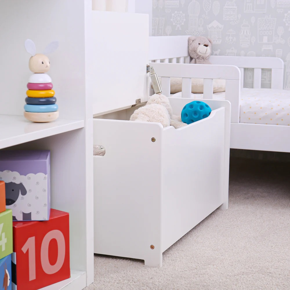 Mějte své hračky, oblečení či peřiny uklizené a zároveň lehce dostupné s touto krásnou dřevěnou truhlou. Má jednoduchý bílý design a velký objem, takže bude děti nabádat k úklidu jejich hraček. Ideální pro malé ruce, tato lavice má mechanismus, který při zavírání ochrání dětské prstíky, na stranách má rukojeti k lehčímu uchopení. Skvělý doplněk herny či ložnice. Velmi kvalitní, robustní a odolný. Po vybalení je nutno složit. Vyrobeno z kvalitních materiálů z odpovědných zdrojů. Odpovídá evropské bezpečnostní normě.