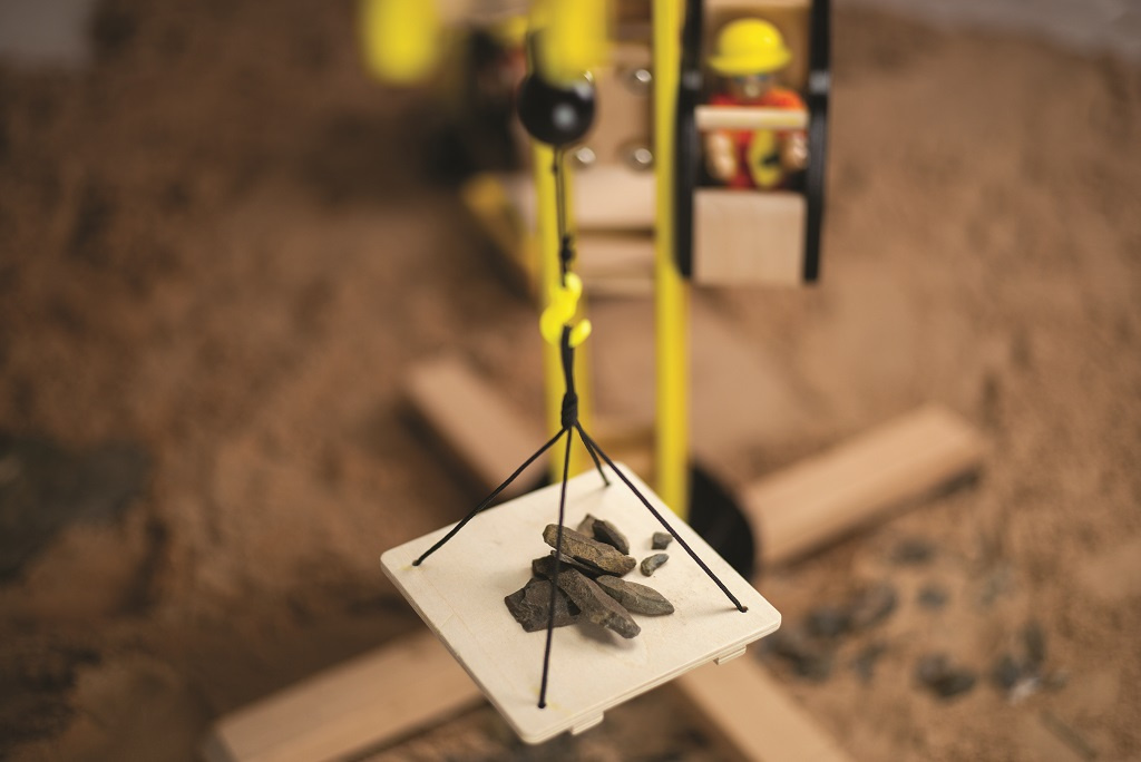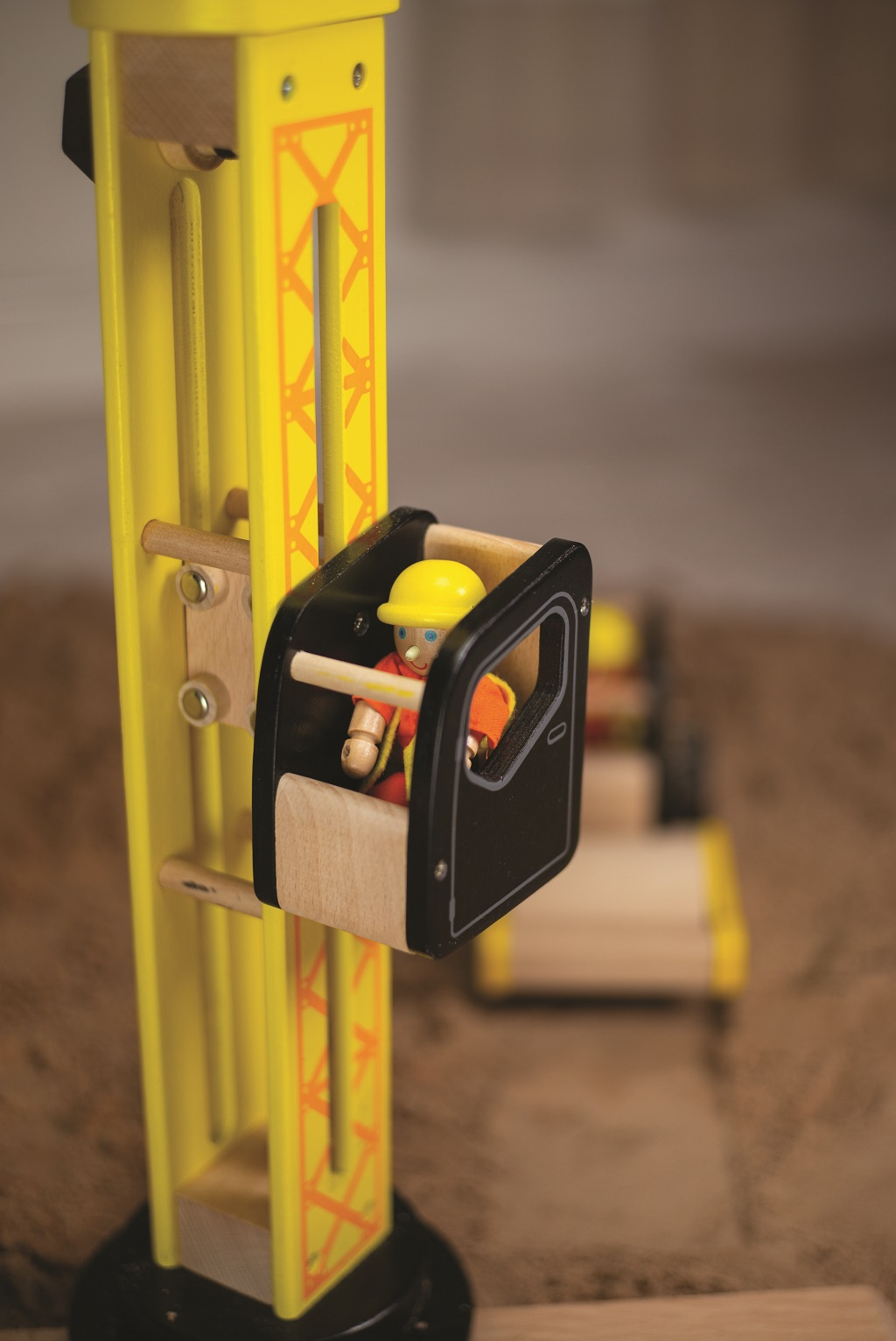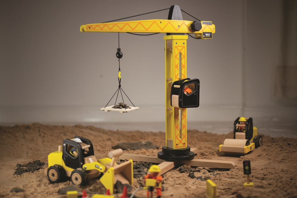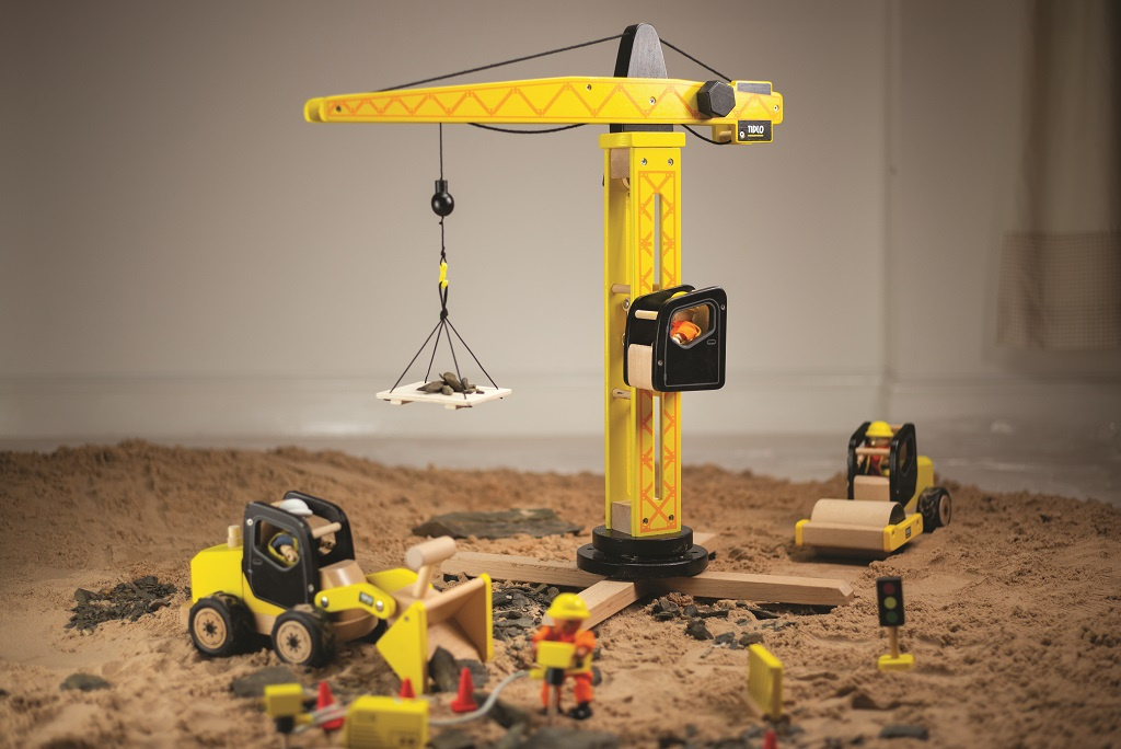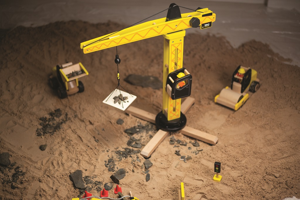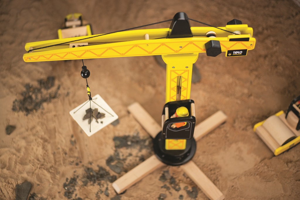 Nad staveništěm se tyčí jeřáb, je připraven k přenosu všeho materiálu! Jeřáb je plně funkční, otočný o 360 stupňů s paletou na háku, která zvedá náklad nahoru a dolů. Kabina je svrchu otevřená a tak do ní lze jednoduše vložit pracovníka. Kompatibilní s Tidlo figurkami stavitelů (není součástí balení). Podporuje dětskou kreativitu a představivost. Rozvíjí koordinaci ruka-oko a jemnou motoriku. Vyrobeno z kvalitních materiálů z odpovědných zdrojů. Odpovídá evropské bezpečnostní normě.