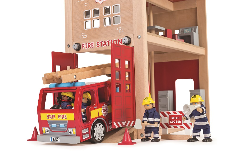 S touto krásnou dřevěnou hasičskou stanicí budou děti zapáleny do hry plné představivosti. Skvělá hračka pro mladé nastávající hasiče. Tento set obsahuje skluzovou hasičskou tyč, šikmou rampu, otevíratelnou bránu, dvě skříňky, stůl, tři židle, stůl pro dispečink a poschoďovou postel. Tato hasičská stanice ma mnoho detailů a její otevřený design je ideální pro hru více dětí. Rozvíjí koordinaci ruka-oko, jemnou motoriku a zručnost. Podporuje kreativitu a představivost dětí. Vyrobeno z kvalitních materiálů z odpovědných zdrojů. Odpovídá evropské bezpečnostní normě. Stanice musí být po vybalení smontována. Figurky prodávány zvlášť.