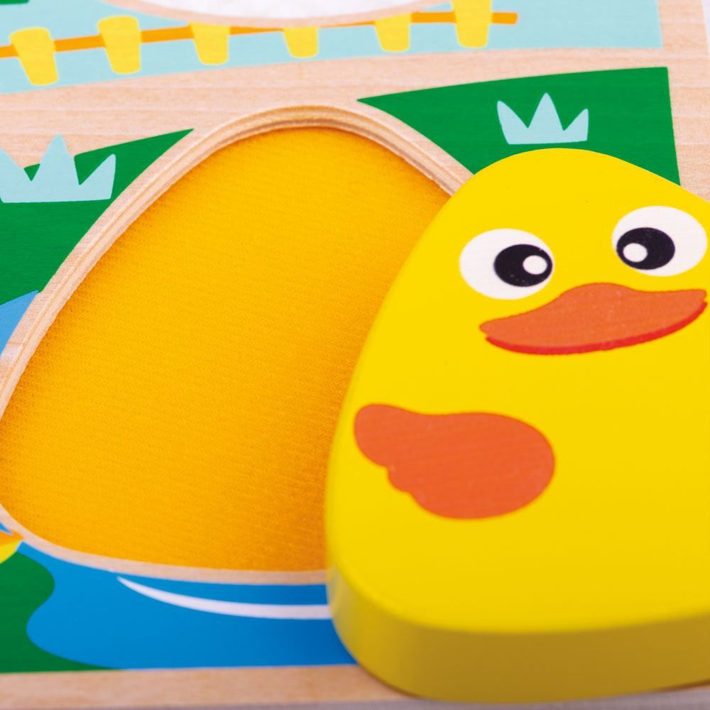 Pociťte vlněnou ovci nebo opeřenou kachnu... To jsou jen 2 ze struktur, které mohou děti s touto hračkou objevit. Zvířata, která jsou ilustrována v prostředí barevné farmy – prase, kachna, ovce a kráva. Senzorické puzzle je ideální hračkou pro brzký rozvoj dítěte. Vyjměte dílky puzzle a objevte 4 rozdílné struktury, které se pod nimi skrývají. Mladí umělci mohou dílky použít k obkreslování. Podporuje brzké poznávání tvarů. Rozvíjí koordinaci ruka-oko, jemnou motoriku a zručnost. Vyrobeno z kvalitních materiálů z odpovědných zdrojů. Odpovídá evropské bezpečnostní normě.