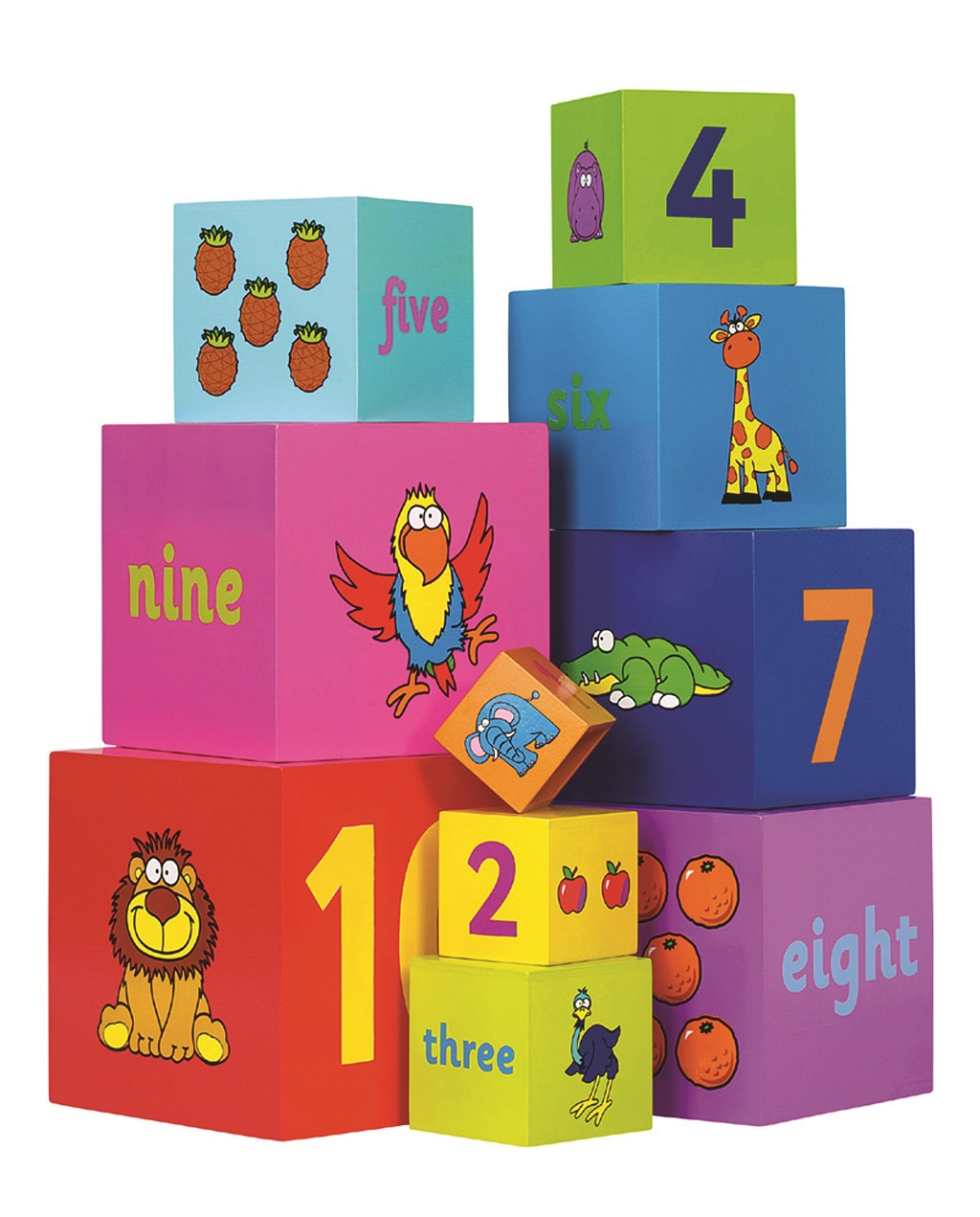 Kostky rozdílných velikostí, zkuste je naskládat na sebe ve správném pořadí od největší po nejmenší a vytvořte věž. Každá kostka má na jedné straně číslici od 1 do 10 a krásnou ilustraci, která koresponduje s číslem kostky. Například číslo 8 a osm pomerančů. Při skládání děti mohou na každé kostce vyjmenovat zvíře nebo objekt, což jim pomůže s jazykovými dovednostmi a slovní zásobou, spočítat tečky a zkontrolovat, jestli výsledek odpovídá číslici, což jim pomůže s počty a poznáváním čísel. Perfektní hračka pro nejmenší je všestrannou učební pomůckou, podporuje brzký rozvoj čtení, počítání, poznávání barev a tvarů, poznávání zvířat. Až si děti dohrají, mohou kostky naskládat na sebe, nezaberou moc úložného prostoru. Rozvíjí koordinaci ruka-oko, jemnou motoriku a zručnost. Vyrobeno z kvalitních materiálů z odpovědných zdrojů. Odpovídá evropské bezpečnostní normě.