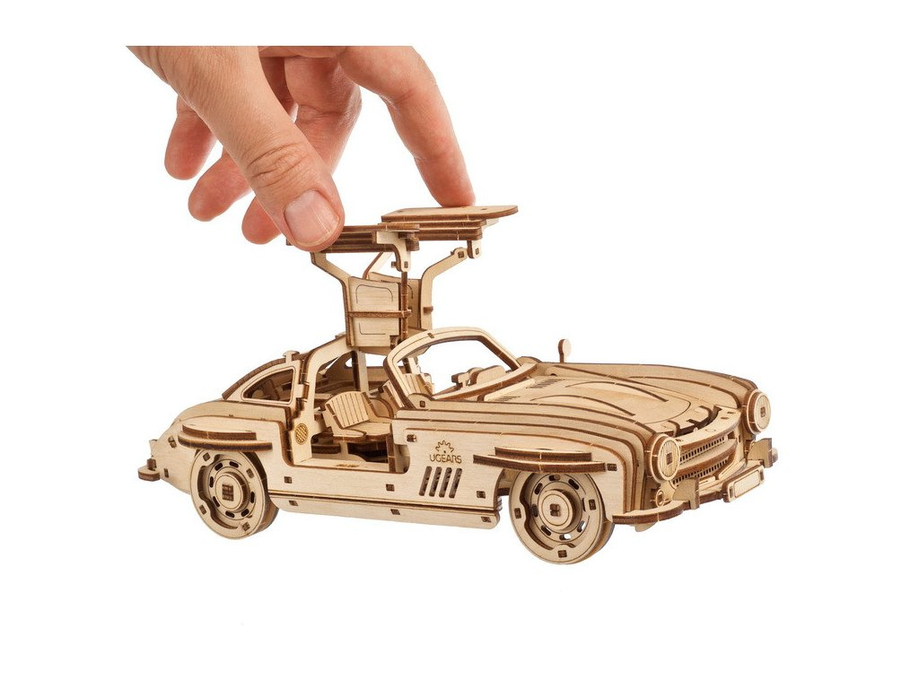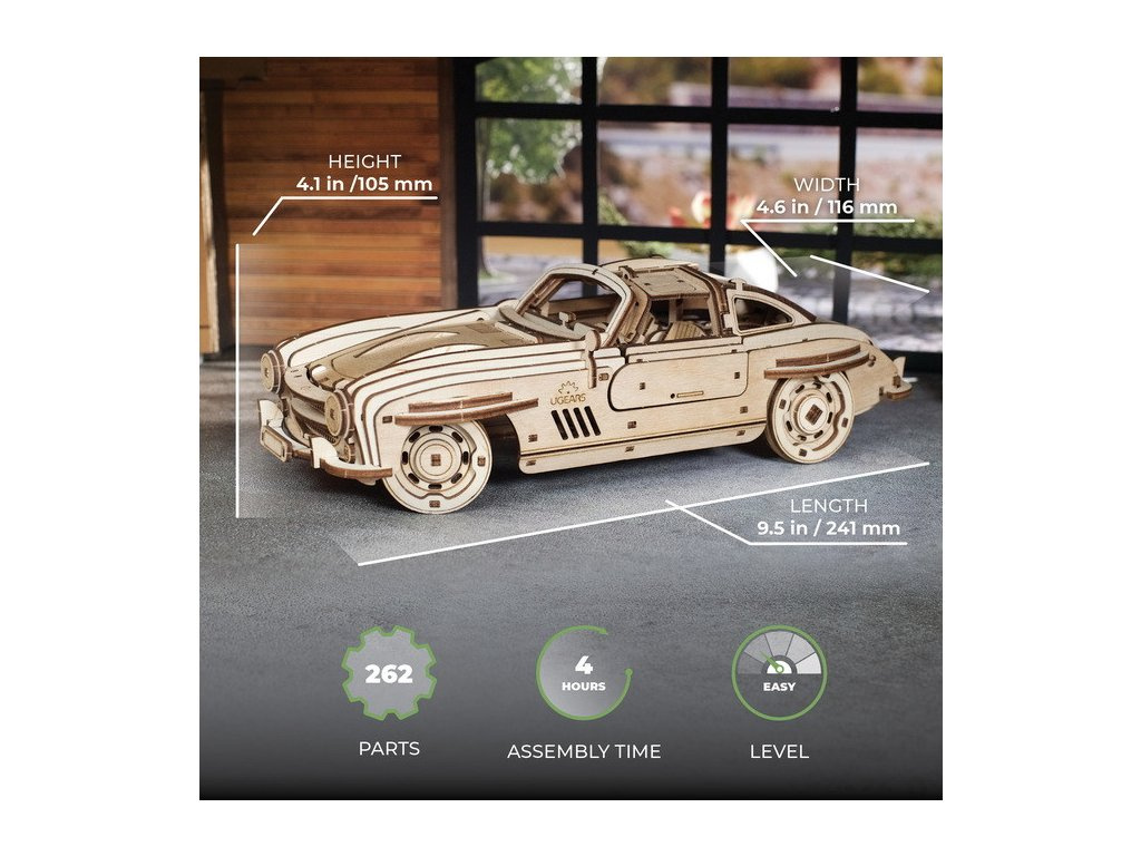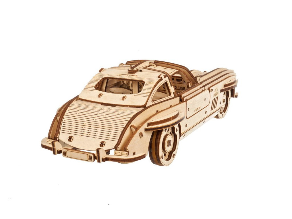 Toto auto má 2 provozní režimy: naviňte jej pomocí ráčnového klíče umístěného pod odnímatelným podvozkem, nebo zatáhněte vůz zpět po rovném povrchu a uvolněte. Vůz má také kapotu, která se zvedne a odhalí model motoru. Autíčko je vyrobeno z kompozitních dřevěných dílů vysoké kvality, které vyloupnete z předem nařezaných desek. Stejně jako u všech modelů doporučujeme obrousit veškeré otřepy na dřevěných dílkách a dále navoskovat ozubená kola či jiné pohyblivé části, dokud vše nepoběží hladce.