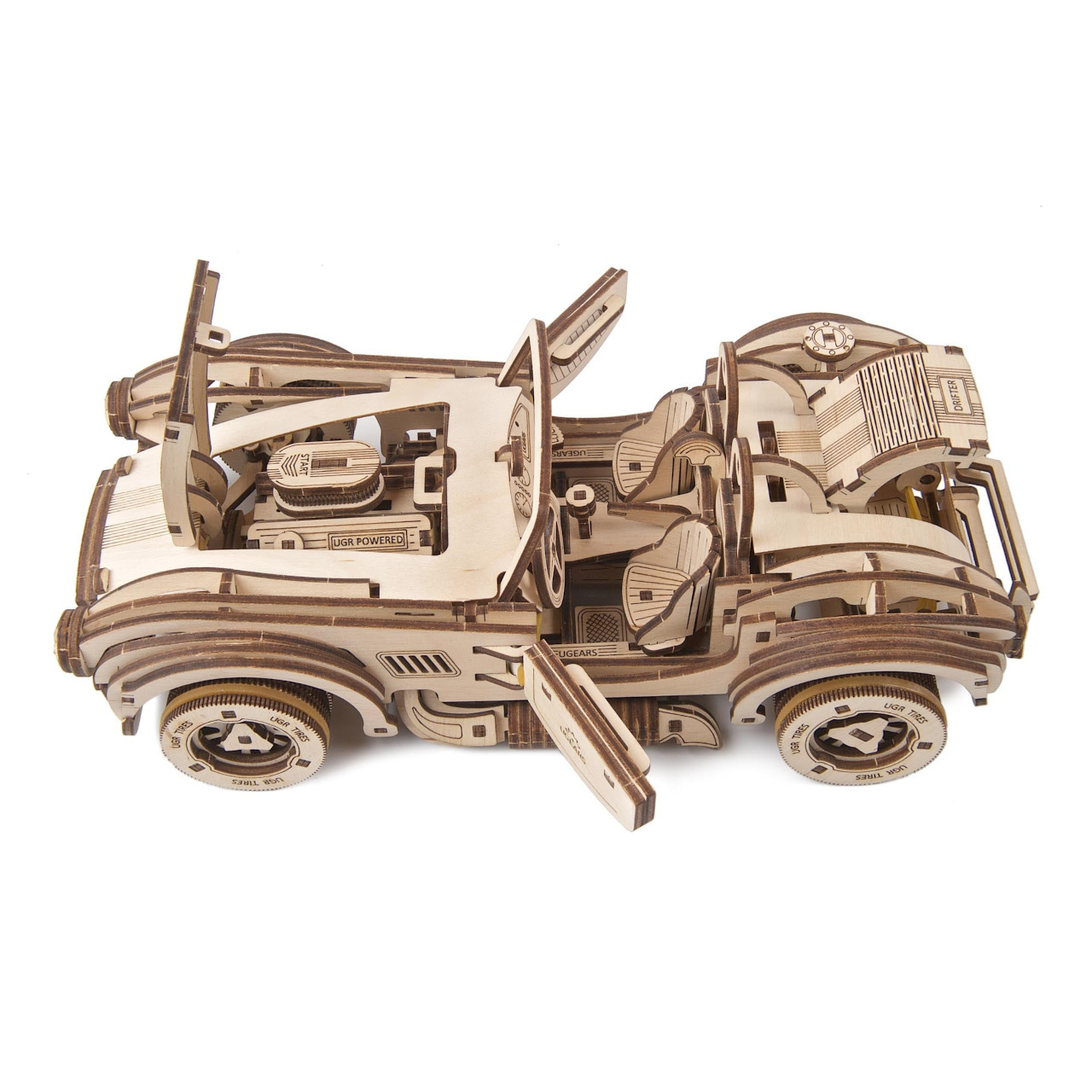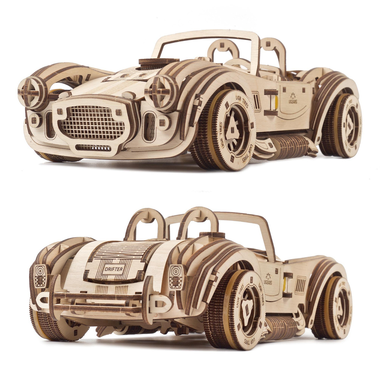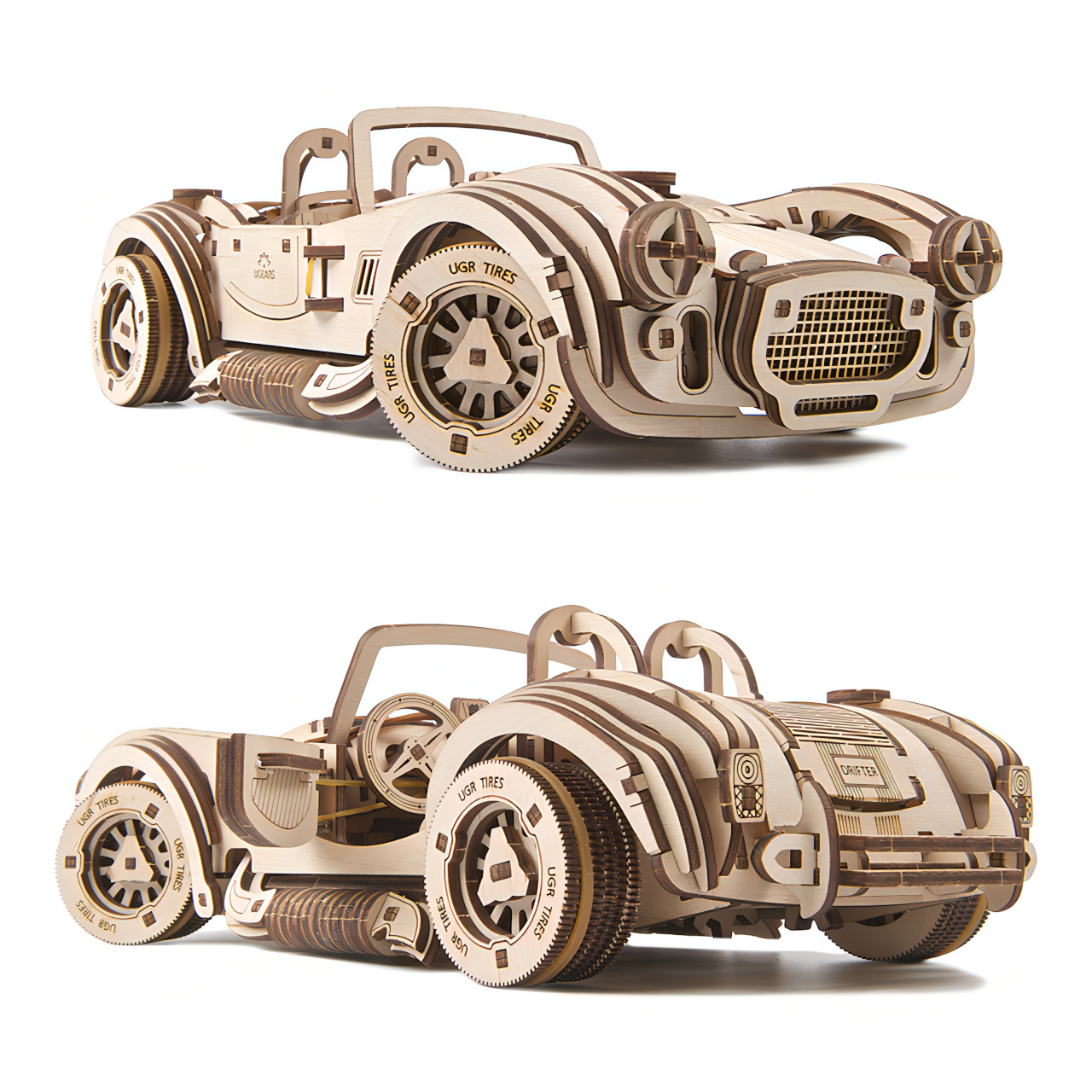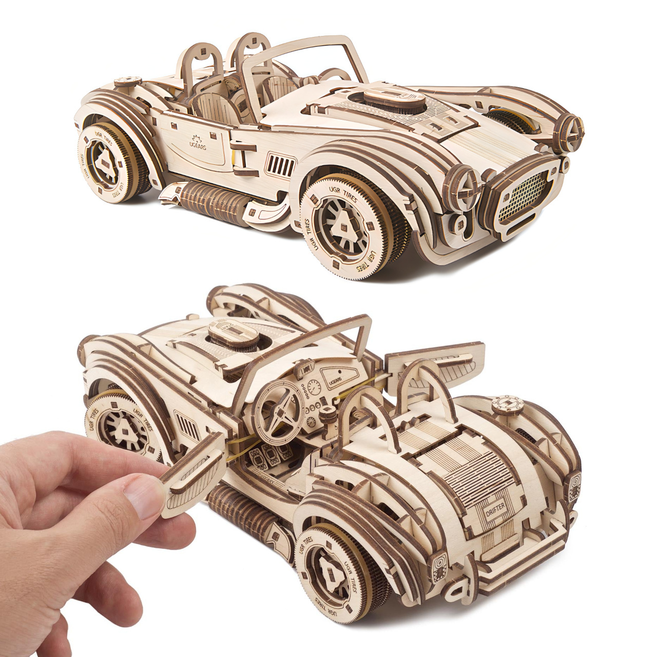 Zkroťte bestii dřímající v legendárním Shelby Cobra! Stavebnice závodního auta vyrobená z překližky. Dejte stavbou vyniknout jeho nezaměnitelným tvarům a nechejte se při tom uchvátit funkčními detaily v podobě otevíratelných dvířek, kapoty a kufru. Auto disponuje nejvýkonnějším pohonem z celé nabídky vozidel UGEARS, je zajišťován pružinovým mechanismem, díky kterému závoďák urazí i více než osm metrů! Pohon je vybaven spouští a převodovkou umožňující provoz na volnoběh i zpátečku. V závislosti na jízdním povrchu a žádaném charakteru jízdy je možno kola auta obout proužky gumy. Ať už tedy preferujete jízdu smykem, nebo dokonalou přilnavost pro jízdu vpřed, model Vám svými možnostmi vychází vstříc. Pro jistou jízdu v obou disciplínách je také vybaven brzdou řízení, takto kontrolovaný vůz můžete při jízdě nerušeně a spokojeně sledovat. Výjimečný dárek pro všechny, kdo rádi trhají asfalt! Uspořádejte závody s dalšími modely UGEARS a nechejte je v prachu daleko za sebou! Vybaveno detailním návodem k sestavení.